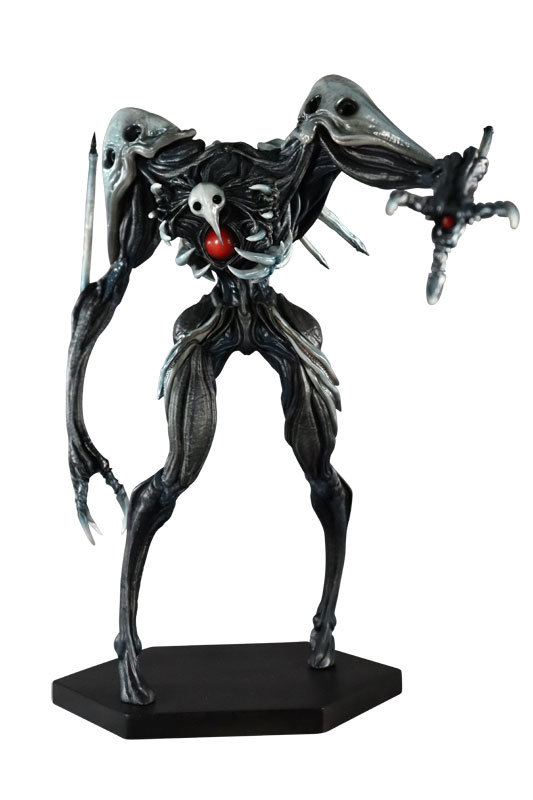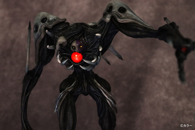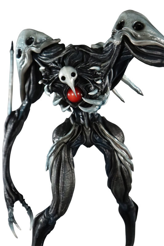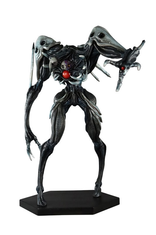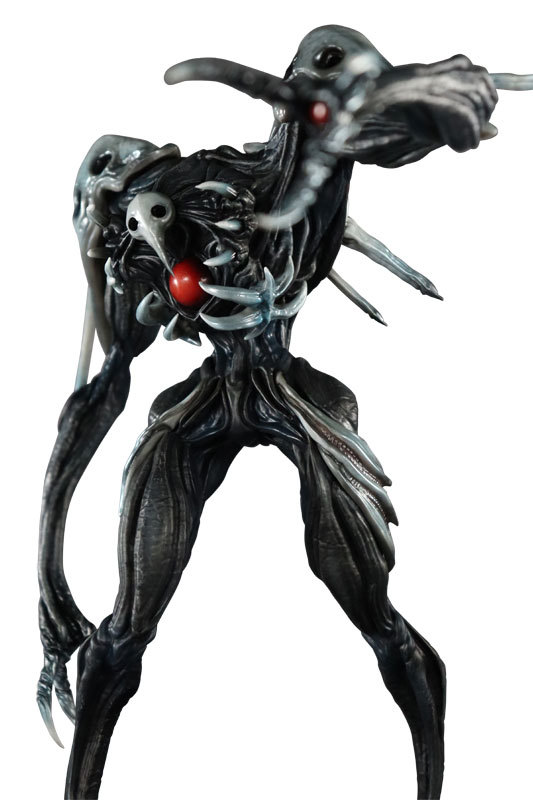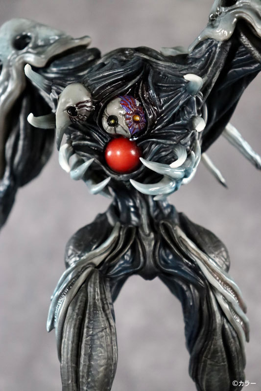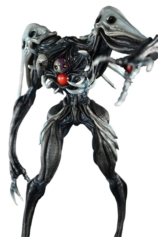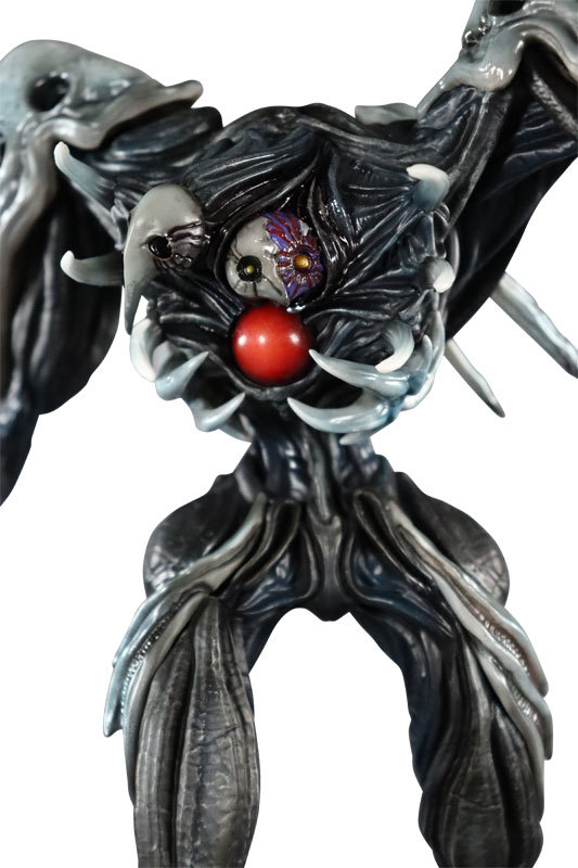 原本就相當怪異的慘白臉孔、修長四肢,注入 Yoshi.的造型設計,纖細的腰身與腿部、手臂的筋肉線條,展現出更為神秘且具生物感的樣貌。透過豐富的塗裝色彩強調詭異的骨骼質感與肌肉纖維,胸芯更由磷光材料製成,在吸收光線後能夠在黑暗中發出微光。為了還原劇中經典的場景,除了普通頭部外,還附有可替換的損壞頭部,呈現受到N2地雷傷害的狀態。