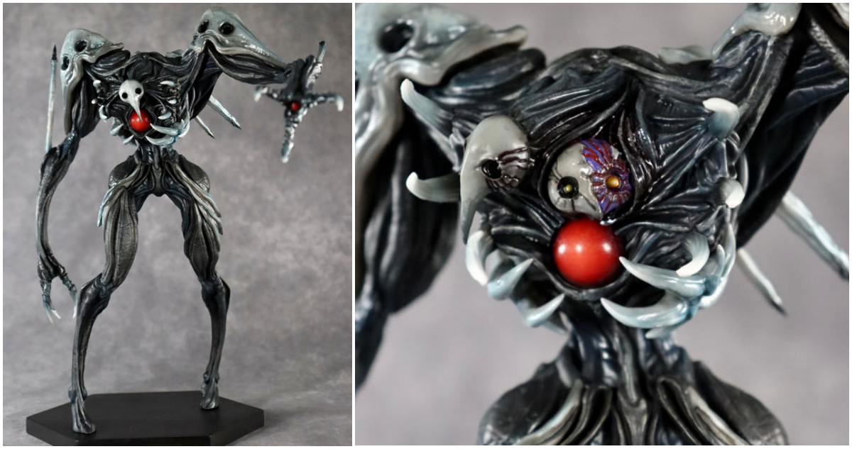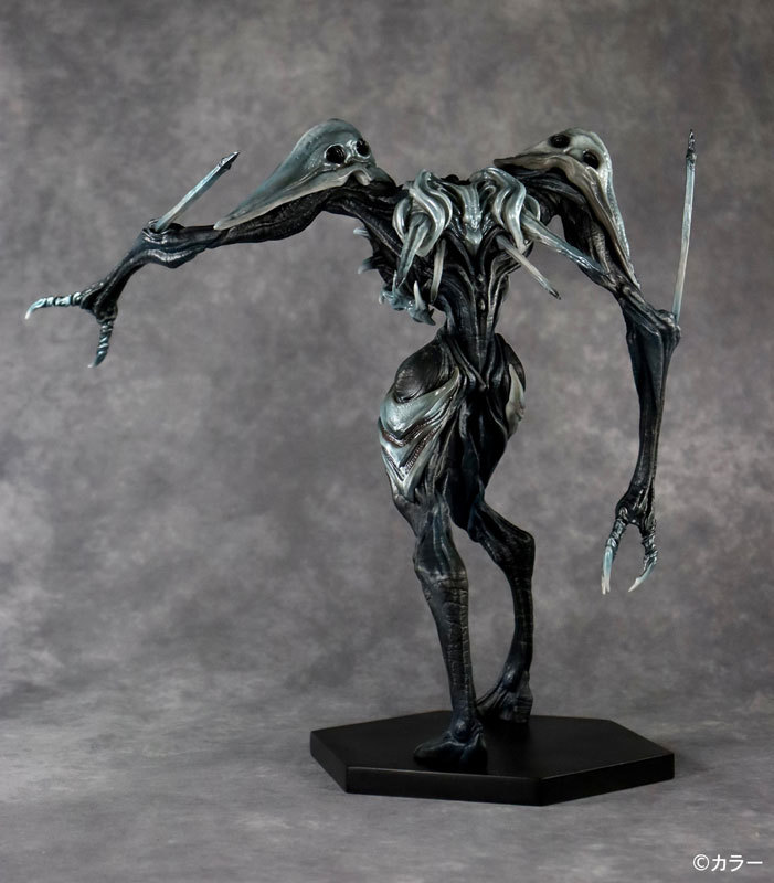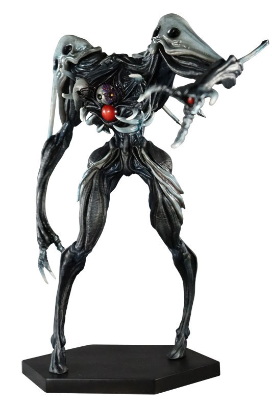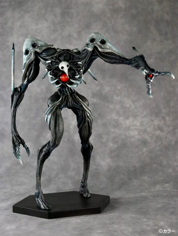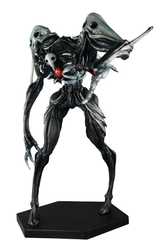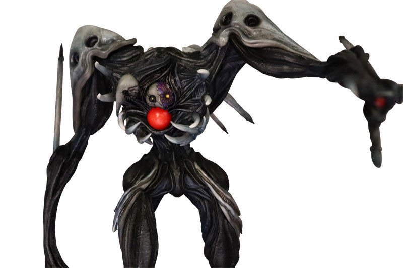 原本就相當怪異的慘白臉孔、修長四肢,注入 Yoshi.的造型設計,纖細的腰身與腿部、手臂的筋肉線條,展現出更為神秘且具生物感的樣貌。透過豐富的塗裝色彩強調詭異的骨骼質感與肌肉纖維,胸芯更由磷光材料製成,在吸收光線後能夠在黑暗中發出微光。為了還原劇中經典的場景,除了普通頭部外,還附有可替換的損壞頭部,呈現受到N2地雷傷害的狀態。