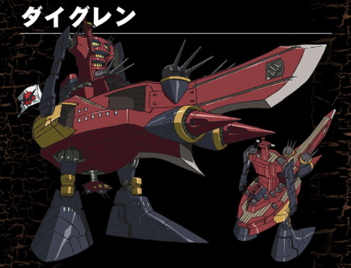 大紅蓮是「大紅蓮團」擊敗螺旋王四天王之一「怒濤之基米花」後,奪取其戰艦「大顏山」並大幅改造而來的專用移動要塞,收納大紅蓮團運用的機體。此艦原本僅為陸地用機體,但經過改造與增設搶奪而來的飛行組件後,獲得了水中游泳、空中飛行能力。