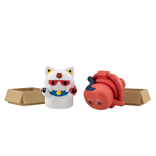 更具有存在感的「大機動戰士喵彈 鋼彈/夏亞專用薩克」,將在「地球聯邦軍喵!」和「吉翁公國軍喵!」中登場的貓咪增大,高度來到 13 ~ 14 公分!除此之外,在細節的造型上也多了更多琢磨,塗裝也更為細緻。不只超可愛的小肉球,還能從紙箱中拿出~增加更多展示與賞玩的樂趣!