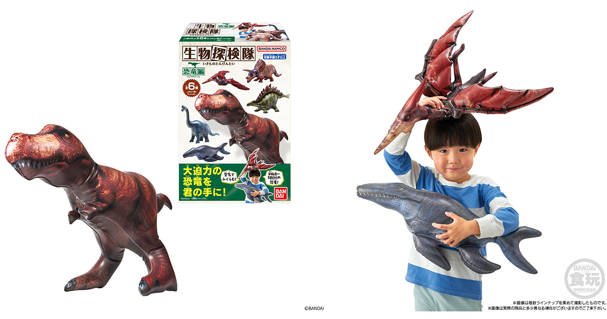 日本萬代玩具公司食玩事業部 BANDAI CANDY(バンダイ キャンディ)發行、主打魄力尺寸的充氣玩具系列「生物探險隊 (生物探検隊) 」在推出蟲篇、蟲篇二〇二四之後,又將在本(10)月發售最新作「生物探險隊~恐龍篇~」食玩!建議售價為每盒 450 日幣,一共有 6 種款式可以收集。