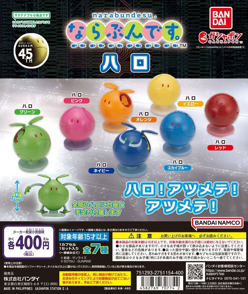 由日本萬代玩具公司轉蛋玩具品牌 GASHAPON 發行的人氣轉蛋玩具『排隊系列(ならぶんです。)』系列,發表了以《機動戰士鋼彈》為主題的最新商品:「機動戰士鋼彈 哈囉排排隊」轉蛋!一共有七種款式,一轉參考售價為 400 日圓,預計於 2024 年 10 月開轉。
