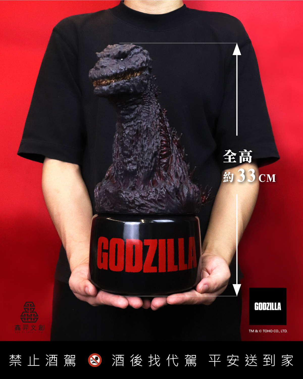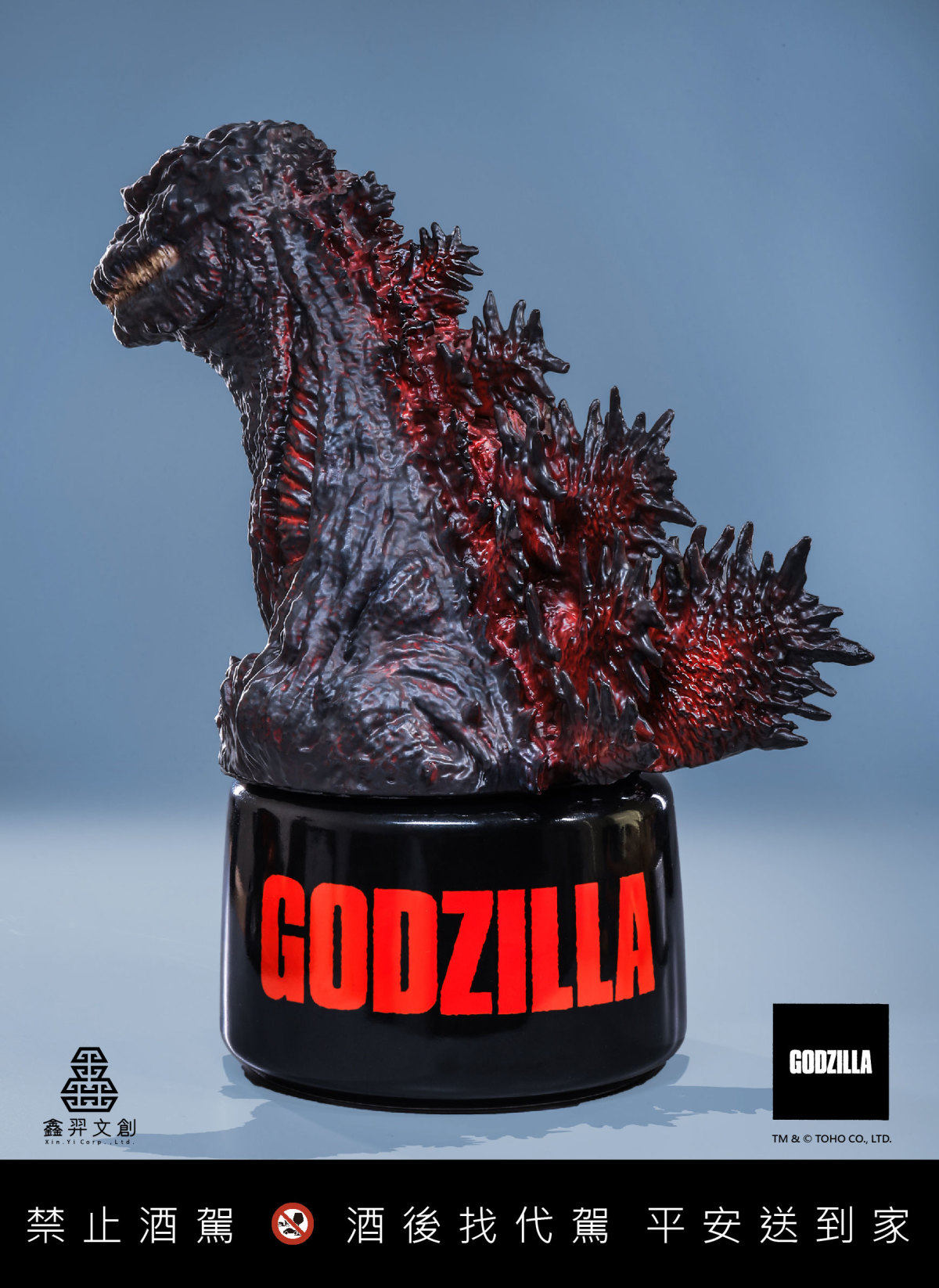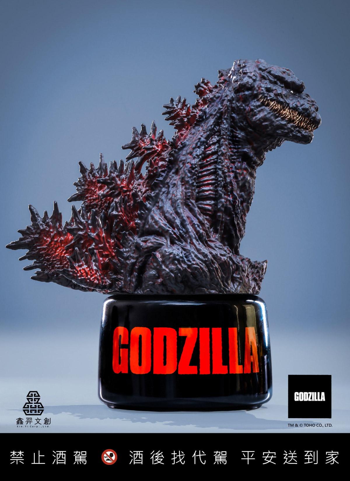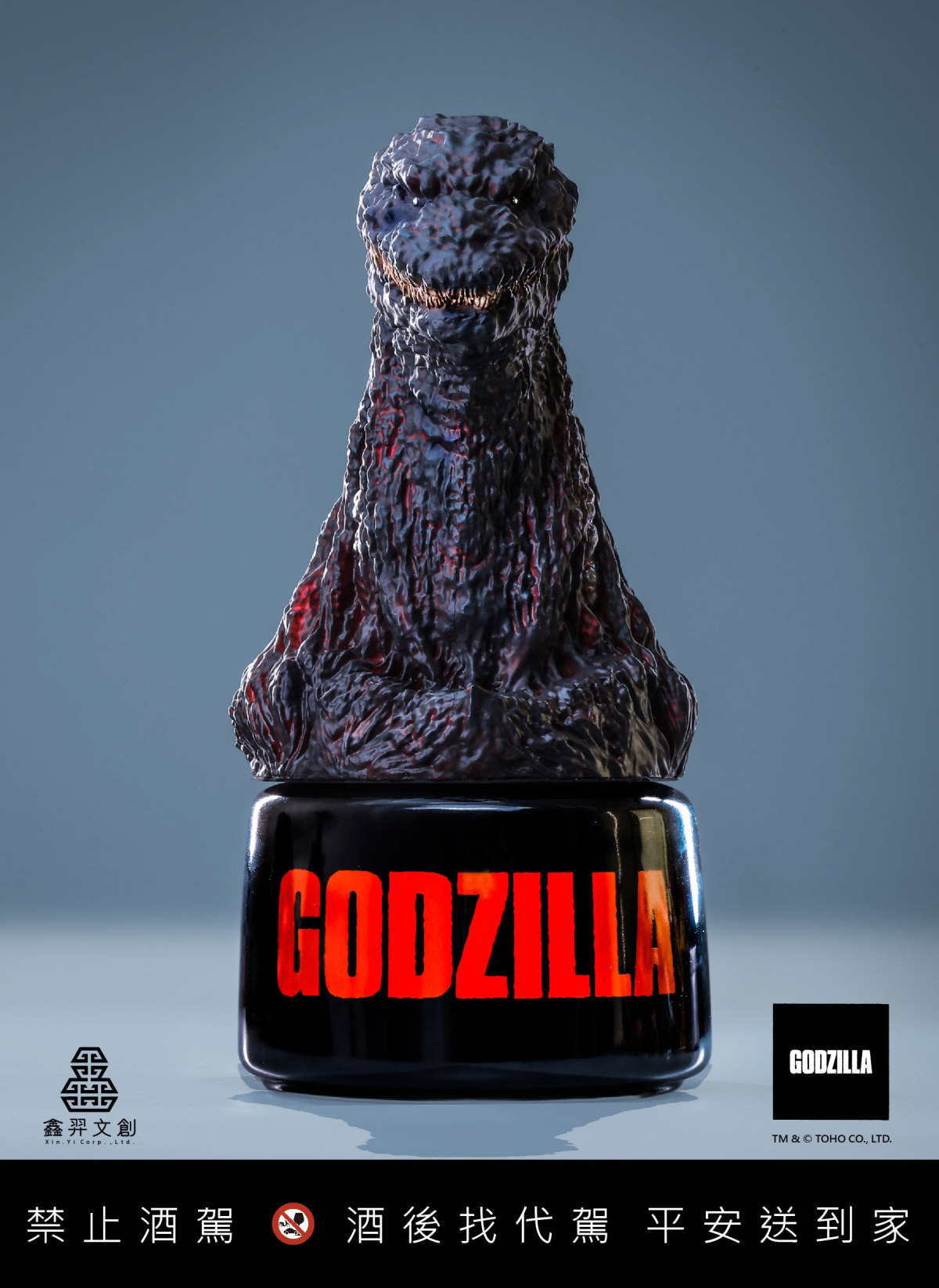 IP授權酒款品牌「鑫羿文創」在四月先行推出限量「紅蓮哥吉拉」即被怪獸迷搶購一空,其造型酒霸氣外型結合高粱酒創意聯名給予高度好評。這次再次取得日本東寶官方授權,推出「哥吉拉系列造型紀念酒 – 正宗哥吉拉(2016)款」。正宗哥吉拉皮膚表面如同焦黑的火山岩,散發出無與倫比的壓迫感和毀滅氣息。巨大的背鰭如同利刃,閃爍著紅色的光芒;多達1 公升容量的金門皇家 56° 三年陳高質感陶瓷酒瓶做成底座,彷彿蘊藏著無限的能量。每一個鱗片、每一個肌肉線條都力求完美,再現無可匹敵的霸氣與力量。酒瓶每一處細節將正宗哥吉拉的氣場完整呈現,展現對原作的致敬,讓每一位哥吉拉收藏家都能感受到那份來自神級怪獸的震撼!