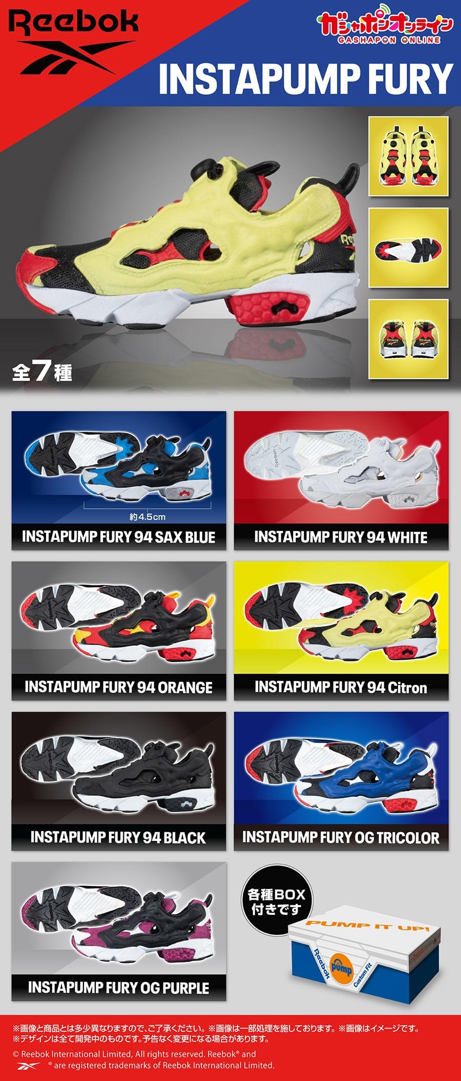 將走過 30 個年頭仍經典不衰的 Reebok INSTAPUMP FURY 透過迷你尺寸的轉蛋再現,經典鞋款無痛入手!於 GASHAPON ONLINE 線上開轉的「Reebok INSTAPUMP FURY MINI FIGURE COLLECTION」球鞋迷你收藏轉蛋,尺寸僅約 4.5 公分,精緻地刻畫極具侵略性的無鞋帶外型,鞋舌上按鈕充氣與 LOGO、鞋底等細節也極致微縮,再現七款人氣經典配色:SAX BLUE、WHITE、ORANGE、Citron、BLACK、TRICOLOR、PURPLE,每款還附有精緻的小鞋盒,讓鞋迷們可以完整收藏~