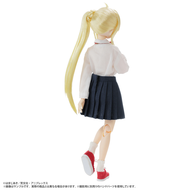 本次 AZONE 以精湛的製偶技術將虹夏製作成 Pureneemo 可動娃娃,以布料細緻還原下北澤高中冬季制服白襯衫及百褶裙的種種細節,紅色帆布鞋及領口標誌性的大蝴蝶結也被精緻再現!此外也同樣採用植毛技術製作黃色單邊長馬尾的髮型,在燈光下會閃耀著光芒,搭配高度可動的素體可以重現各種劇中的模樣!