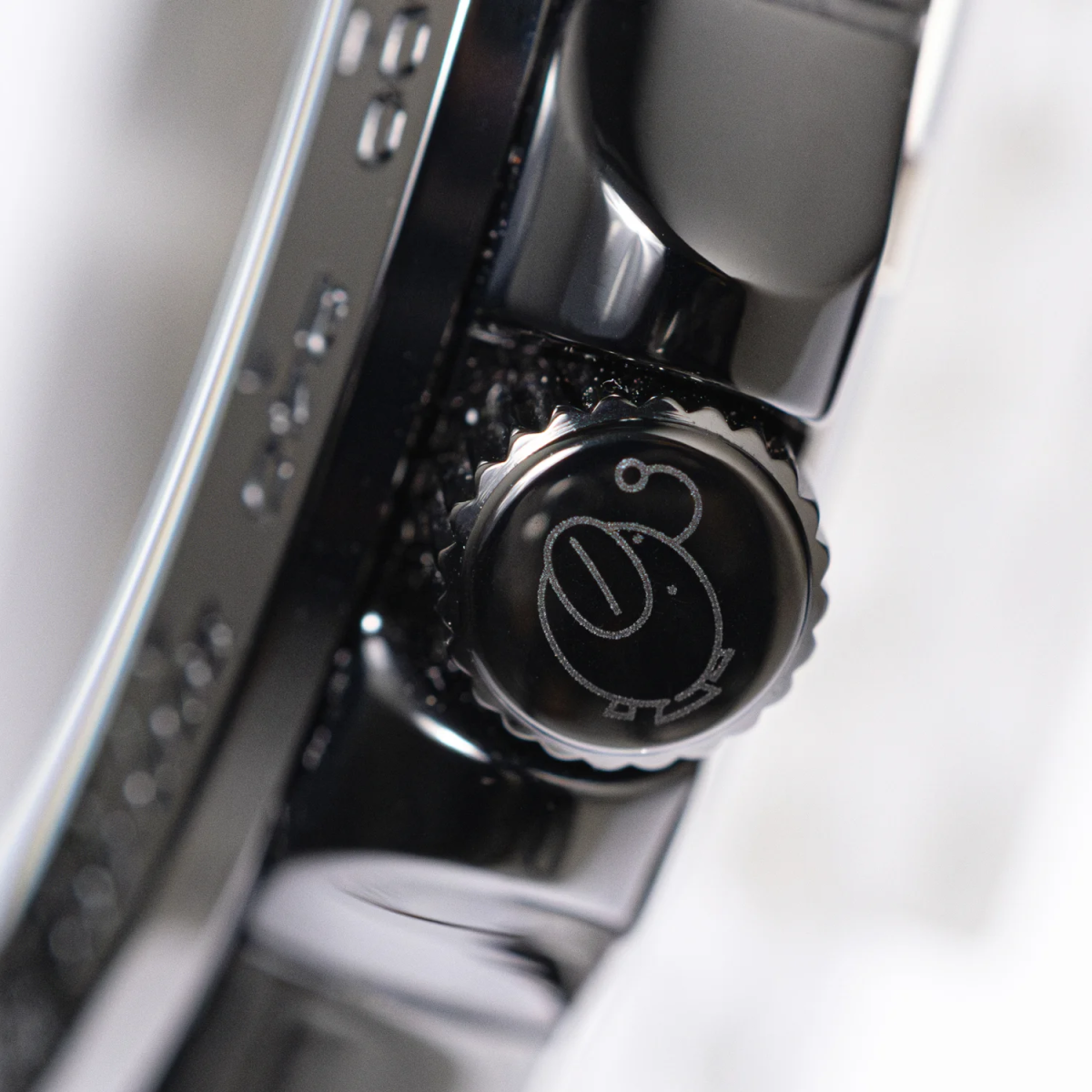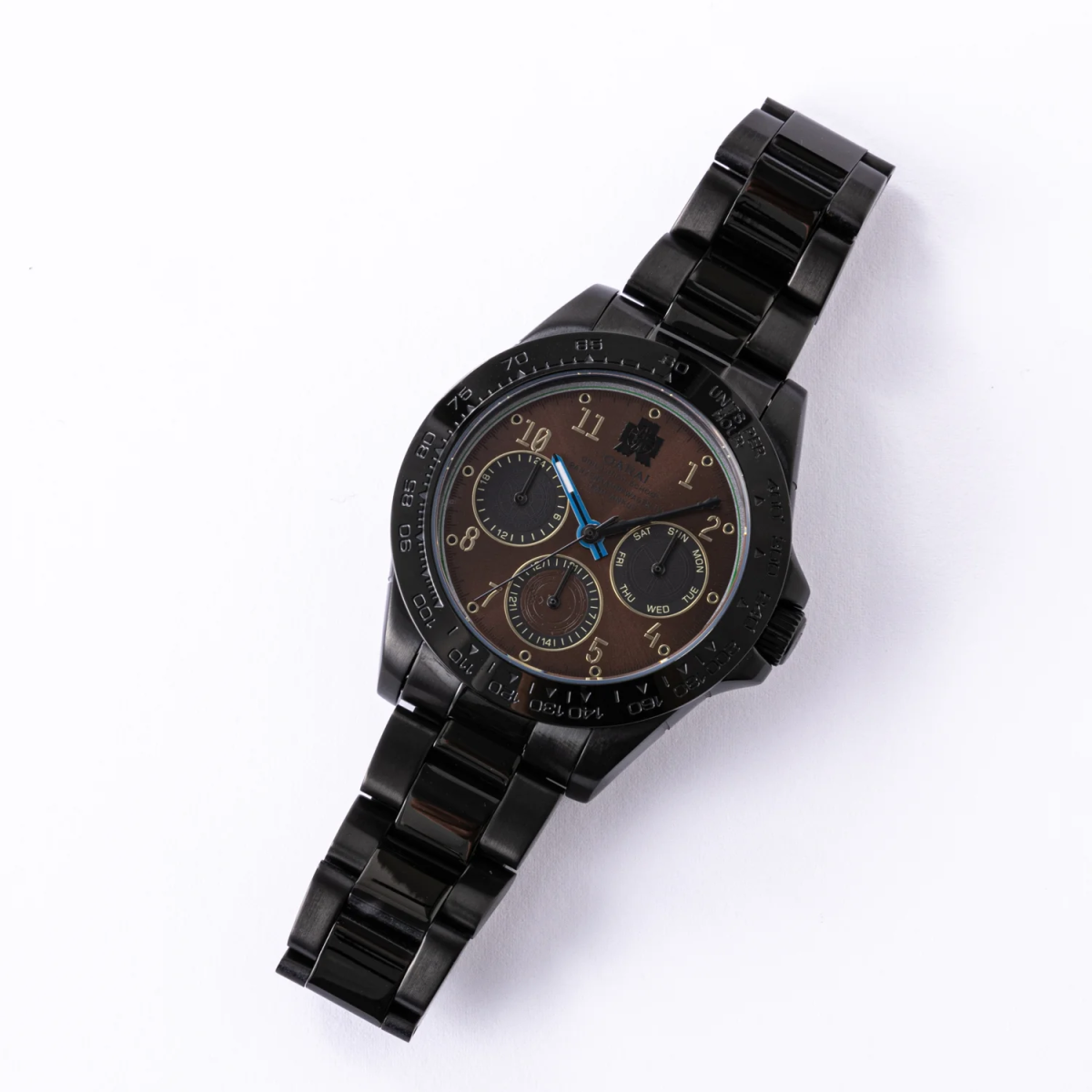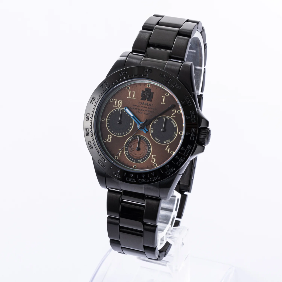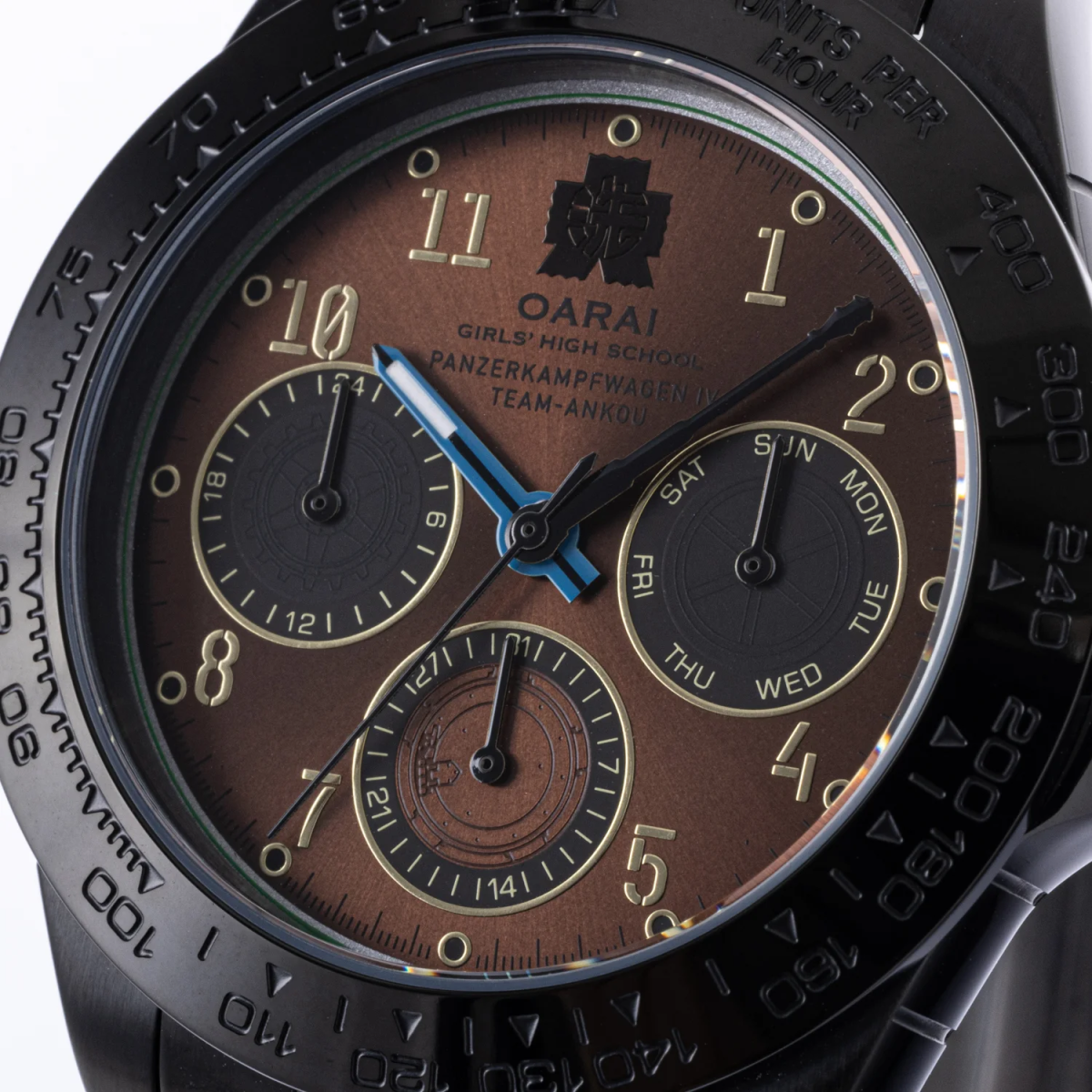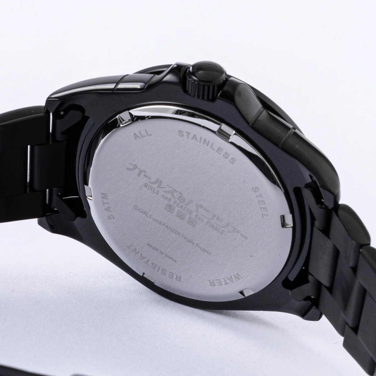 以大洗代表性的四號戰車為靈感,12 點鐘處有著校徽圖騰,3 點鐘、6 點鐘和 9 點鐘位置設有類似車輪的小錶盤和車身頂部的艙門,背景也採用戰車的深褐色為設計,側邊旋鈕還配有招牌的魚圖騰,細節可說是非常出色。