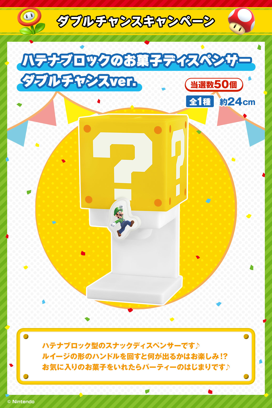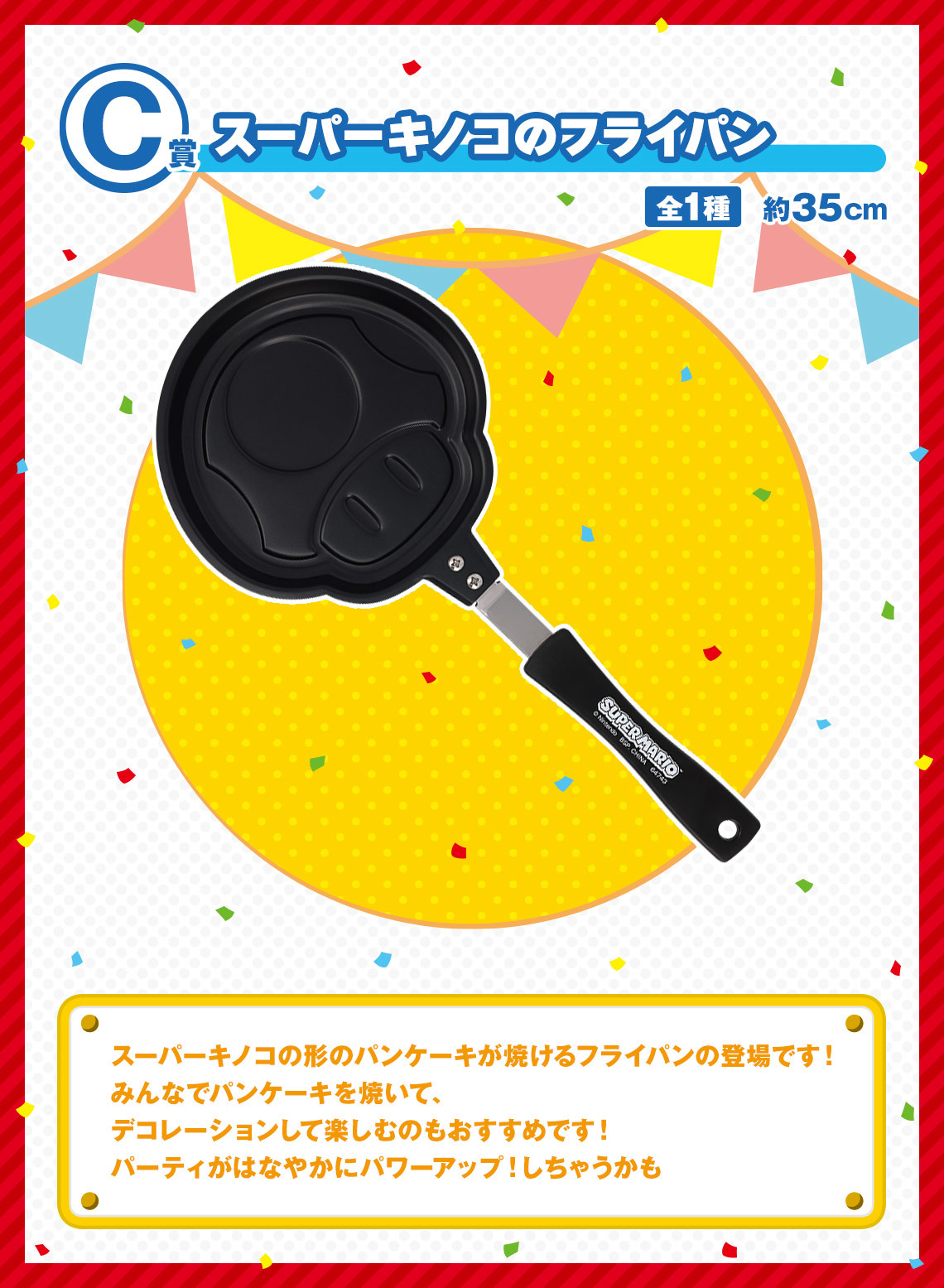本次的「超級瑪利歐 大家一起在家派對!」圍繞居家派對主題提供 A~G、最後一賞與雙重中獎賞等多種級別的賞品。其中 A 賞與雙重中獎賞部分為問號方塊造型零食分裝器,分別為瑪利歐和路易吉主題,在轉動瑪利歐及路易吉造型旋鈕後就可以讓裝入的零食掉出;B 賞的角色雙層點心架可以用來在派對上擺放各式點心;C 賞的超級蘑菇造型煎盤,可以煎出超級蘑菇造型的鬆餅!