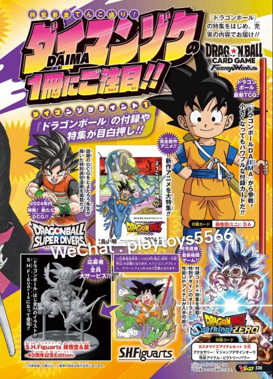 隨著《七龍珠:DAIMA》的上映,也搶先發表了將於 10 月 21 日的《V Jump》12月特大號中登場的的應募活動獎品S.H.Figuarts 孫悟空&龍-40周年記念Edition-」,令人懷念的小悟空造型搭配有經典的龍坐騎,非常令人期待!詳細的應募辦法將會於《V Jump》公布。