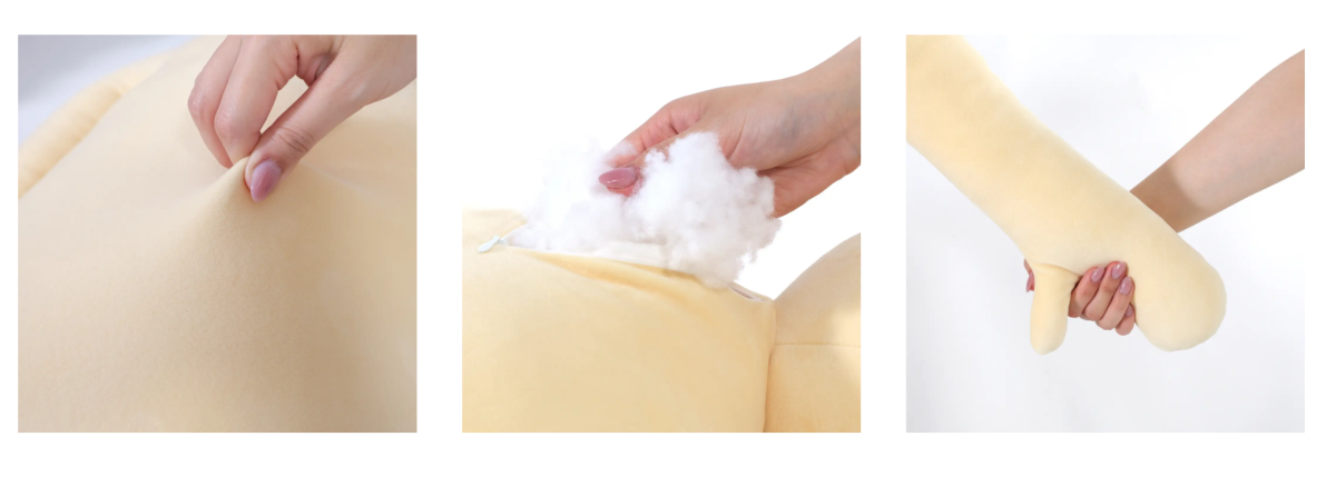 內裏也填充了鬆軟的穀物棉,可以根據您喜歡的舒適度和身體線條進行客製化。布料採用光滑的拉絨材料製成,摸起來格外舒適。