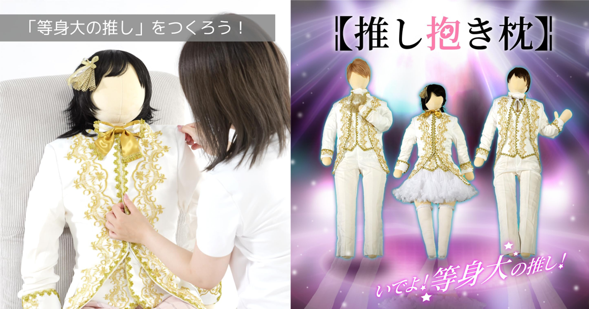 「推し抱枕」以真人的比例製作,推出三種尺寸 : 150 公分、165 公分與 180 公分,可以滿足男女不同的身高。因為它是人形的,可以自由地擺出它的姿勢,就好像你的推正在和你一起睡覺一樣。