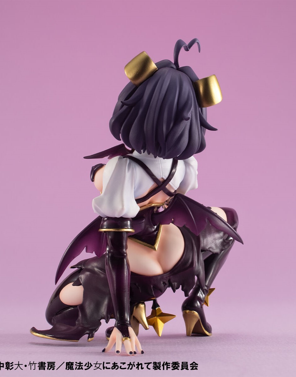 「掌中的瑪吉雅邪惡」PVC塗裝完成品,延續系列主打的「能捧在手掌心」風格,以尺寸全高約 9.5 公分的小尺寸,將拿著鞭子的瑪吉雅邪惡立體化!露出恍惚煽情的表情,搭配讓人忍不住想臣服的狂野蹲姿,實在有夠壞~大尺度露出的服裝與魔翼更是施以油亮光澤感的塗裝,搭配金屬色澤的金邊,營造不同的質感,並與柔軟的肌膚形成對比。從腰部到臀部的線條、可以看到的股溝的背影...今天想要接受什麼懲罰呢?