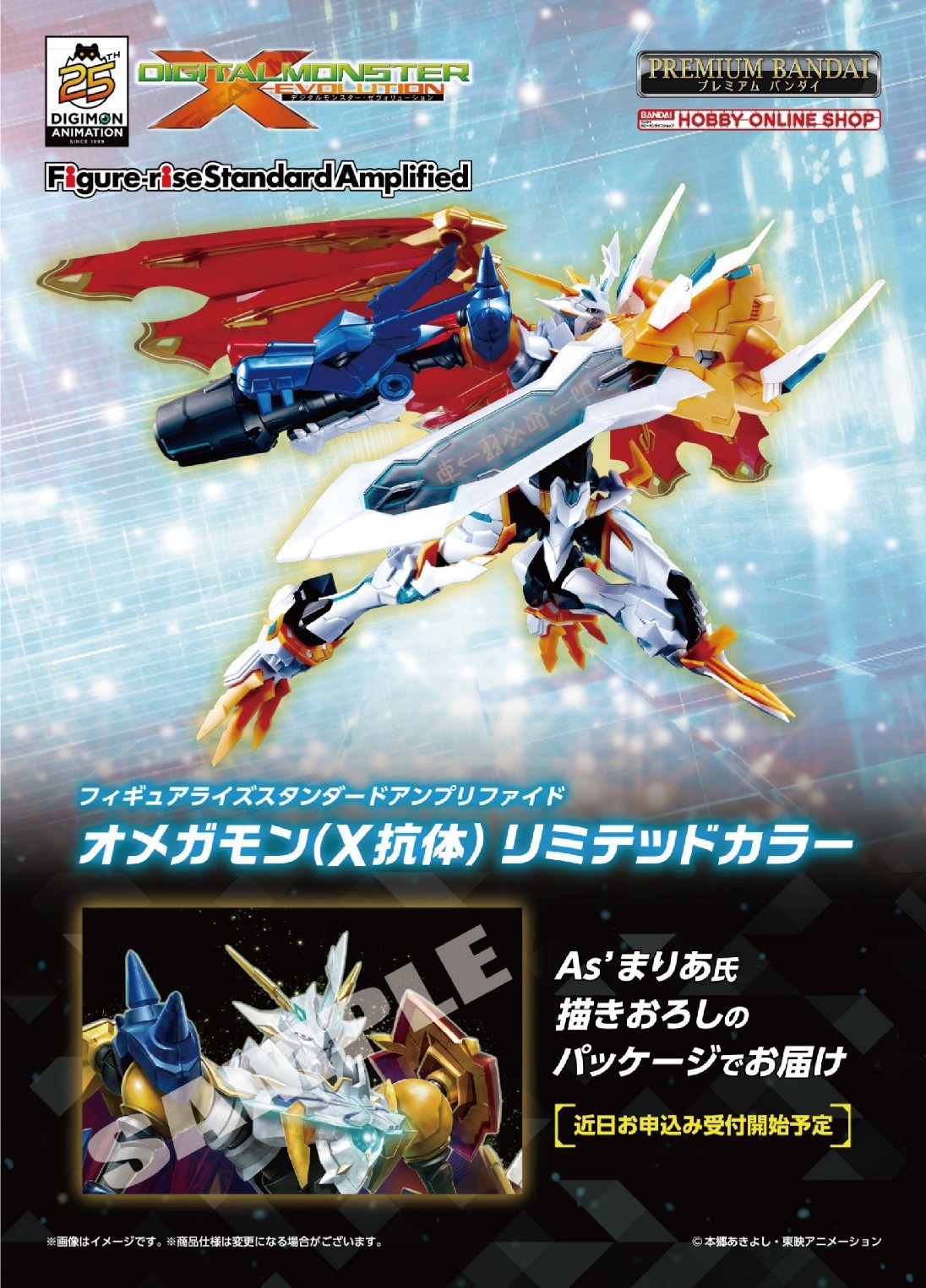 由日本BANDAI SPIRITS 公司 HOBBY 事業部發行,增幅角色設定與組裝模型張力表現的『Figure-rise Standard Amplified』系列繼一般版奧米加獸 (X抗體)後,再度預告異色版新商品「奧米加獸 (X抗體)[限定配色]」將於萬代官方網路商店 PREMIUM BANDAI 限定販售的消息。