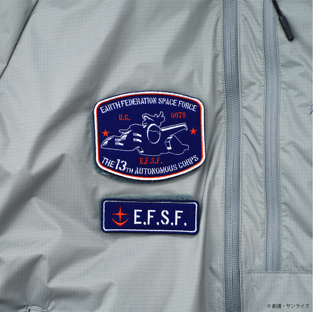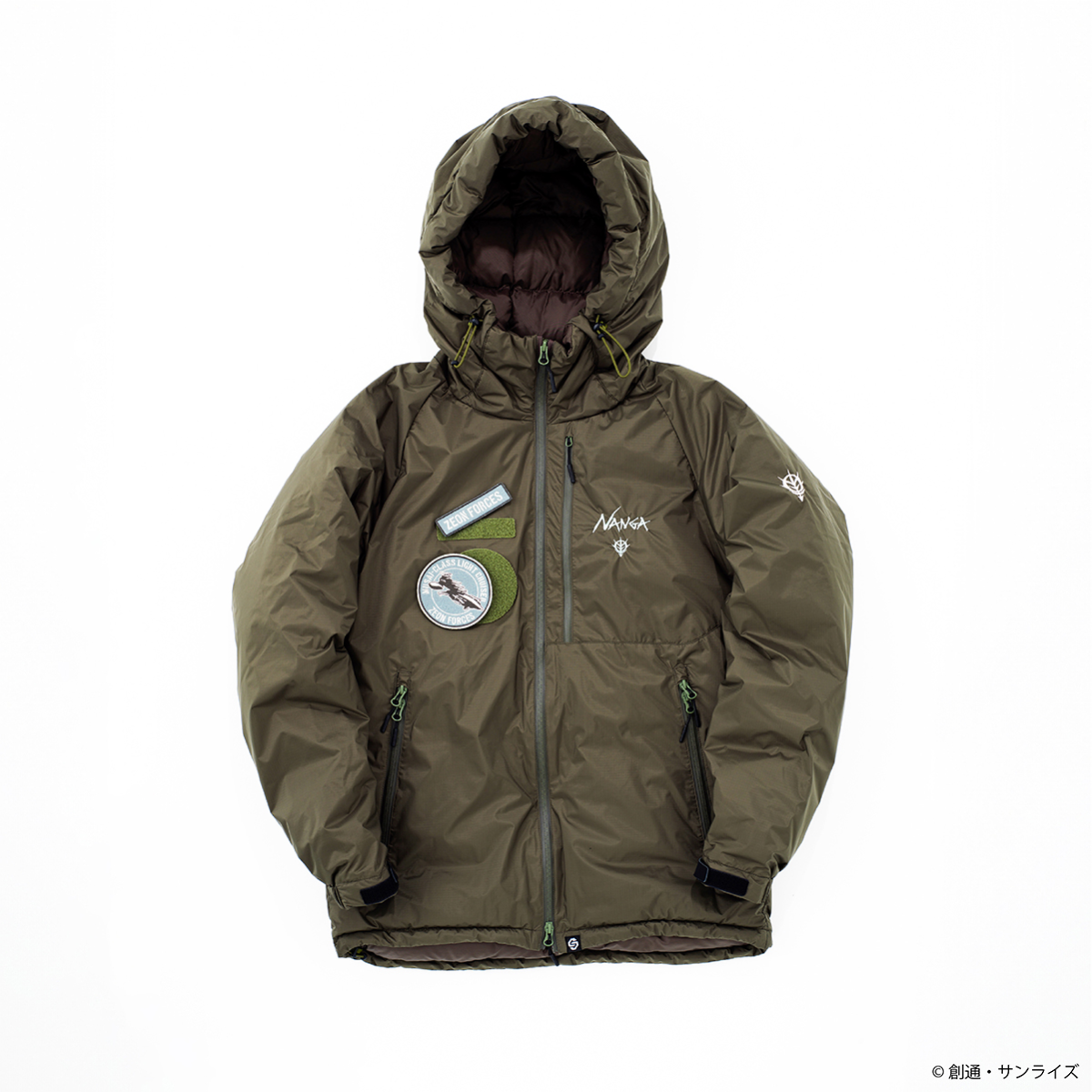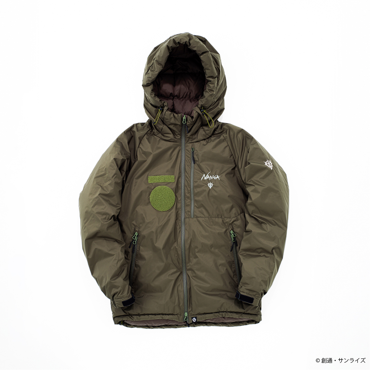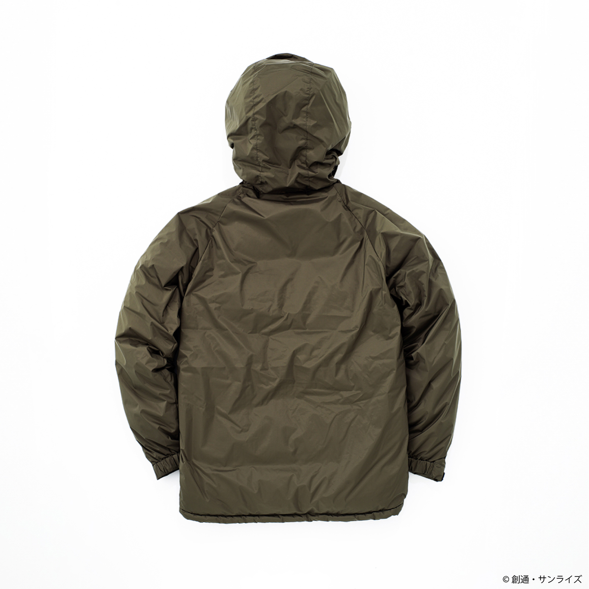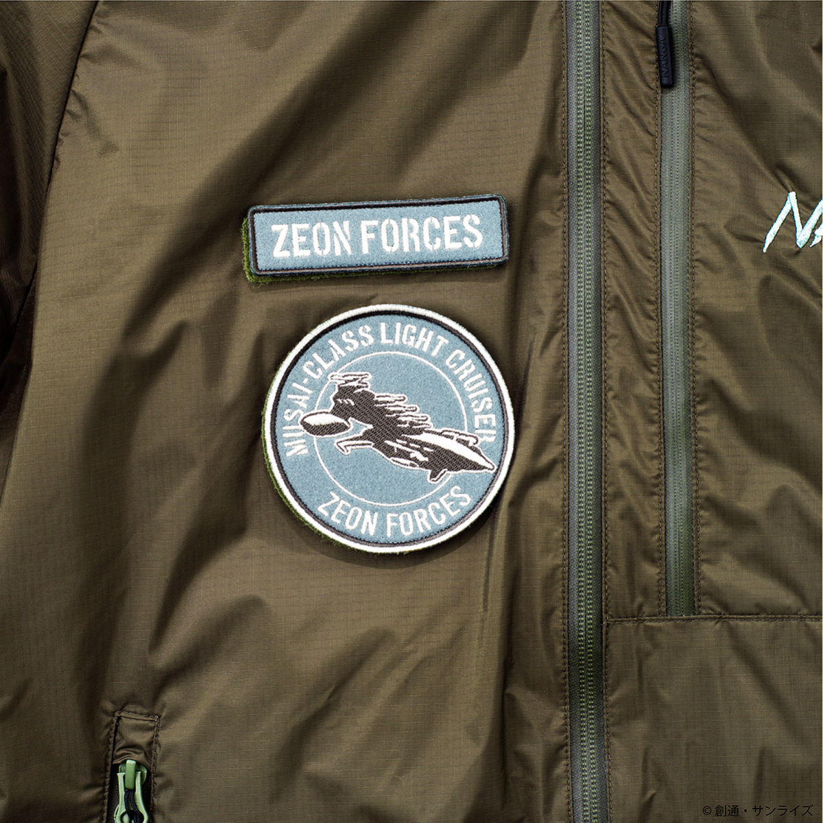 FARMEL 款採用軍綠色為基底,左胸上有吉翁軍 & 姆塞級輕巡洋艦( Musai-class Light Cruiser ) 標誌布章可以自由拆卸使用,左袖上有吉翁軍軍徽的刺繡標誌,除了機能性極佳的面料 AURORA TEX® 外,內裡採用高密度羽絨禦寒能力出眾。另外採用雙開拉鍊設計,口袋內部採用保暖布料襯底,可以用作暖手袋使用。