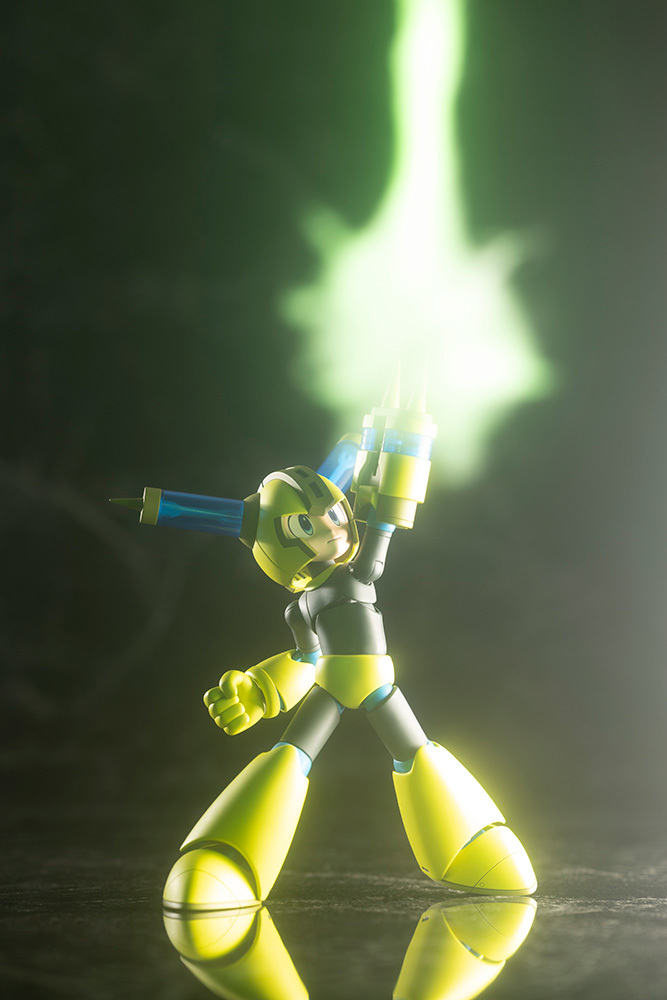 「洛克人 疾速閃電Ver.」基於過去發售的一般姿態版洛克人修改而來,同樣運用 CAD 設計而成、兼具造型與可動的零件構成,完成後全高約 14.7 公分,新規再現彷彿熔絲人的螢光黃、黑成型色,運用透明藍零件表現頭部熔絲、腕部武器的外罩。部分零件已預先塗裝完成,更附上四種印刷完成表情零件,其中三款是不同於一般姿態版的新規表情,可互相替換再現各種情境。