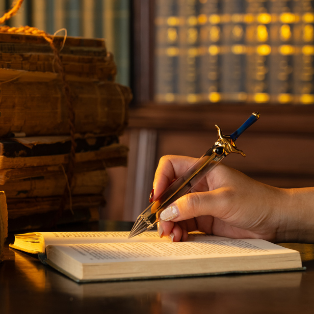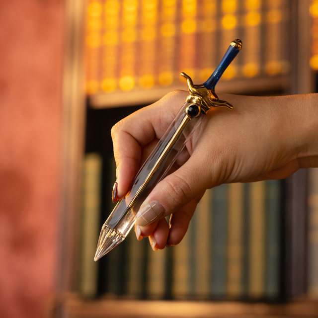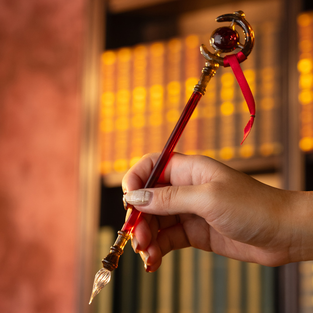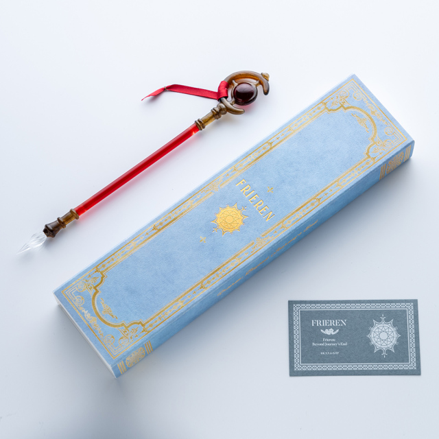 這次推出的兩款造型玻璃筆,採用日本職人手工製作,用玻璃還原了主角芙莉蓮的魔法杖和欣梅爾的劍,不僅有著極高還原度,更用玻璃展現獨特美感。另外包裝盒採用魔法書為靈感,並在上面的金箔上分別有著兩人的名字 ( 英文 ) 。