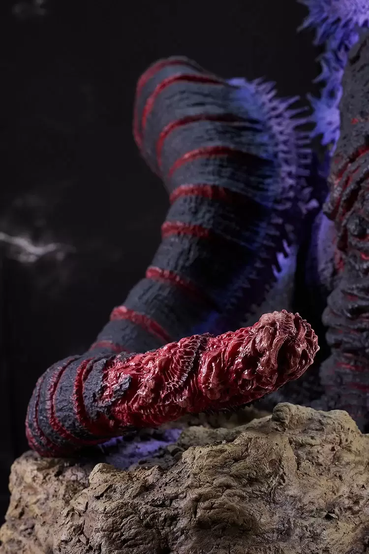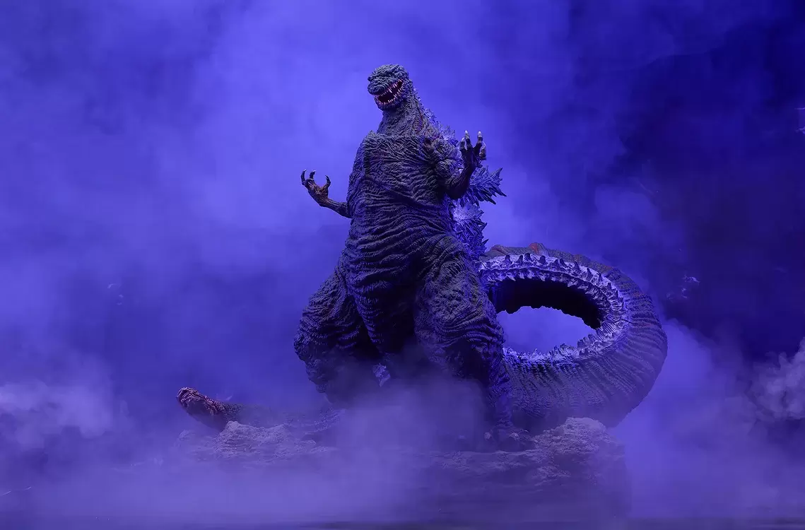 GSC「哥吉拉(新‧日本英雄宇宙)」軟膠模型&Polystone製塗裝完成品,以標誌性的主視覺插畫為基礎立體化!尺寸全高達 56 公分,由ZO MODELS 代表造型師伊原源造擔任原型製作,刻劃出礁石般的粗糙皮膚,令人畏懼的利牙、小眼睛忠實還原,長而巨大的尾巴末端猶也重現如異形般怪誕的細節;彷彿要裂開的胸口,呈現了電影中帶給人的壓迫感。