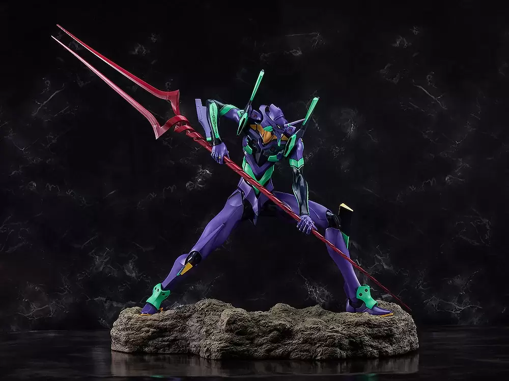 GSC「EVANGELION初號機(新‧日本英雄宇宙)」Polystone&聚氨酯&塑膠製塗裝完成品,以標誌性的主視覺插畫為基礎立體化!尺寸全高達 51 公分,由 KLAMP STUDIO 擔任原型製作,真實再現初號機的機體細節與初號機瘦長的身型比例,弓著背、傾身踏步向前的姿態,手中握著朗基努斯之槍,散發準備迎戰的壓迫感!