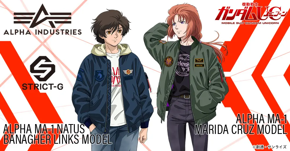 這次推出的款式以主角巴納吉·林克斯以及新吉翁軍複製人普露第 12 號瑪莉妲·庫魯斯為主題,特別繪製了兩人穿上外套的模樣,以時裝為特別設計,展現出腳色少有的私服時尚風情。