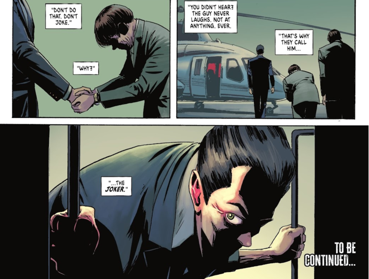 有蝙蝠俠,就必定有小丑,這個不論到哪個宇宙都不會改變的宿敵關係,自然也發生在「絕對宇宙」當中。即便目前他還不是第1期篇章的主要角色,但也是「神秘特務」阿福·潘尼沃斯所追蹤的目標之一。