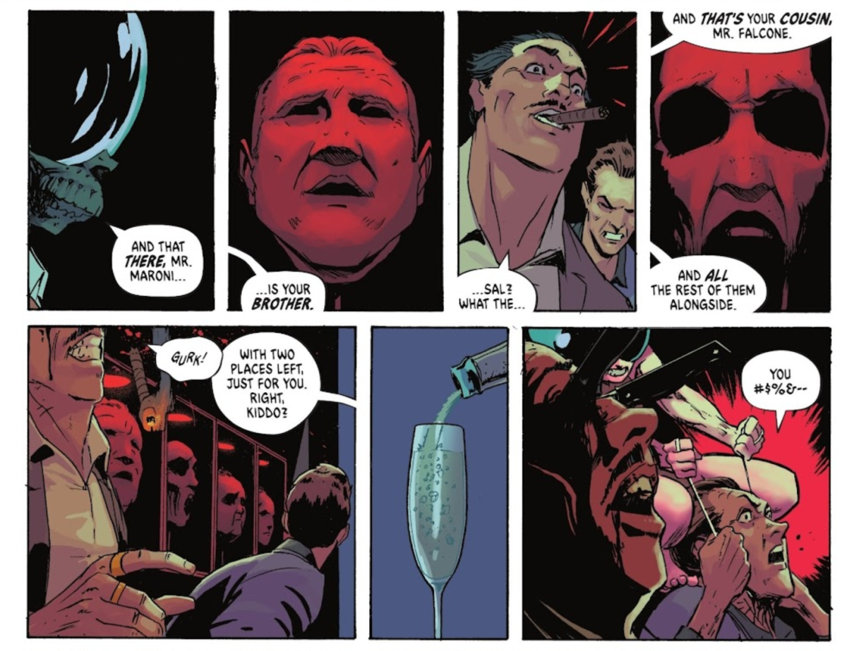 過去對於高譚市的黑道勢力,往往是在布魯斯·韋恩當起「蝙蝠俠」後的幾個月,才會開始產生變化,但在「絕對宇宙」當中,則是決定將這場派系鬥爭作為《絕對蝙蝠俠》的開場,至於會怎麼代入到企鵝人,則是接下來同樣令讀者關心的部分。