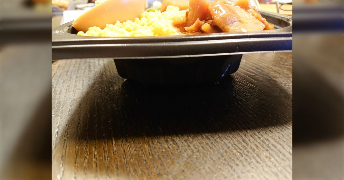 發文的推主貼出照片,這是 7-Eleven 販售的釜飯便當,看似上面長長的容器,卻在底部偷偷縮減容量,讓份量大大的縮水,不注意的人買回去才會發現,讓人感覺失去信任,用這種方式偷料。