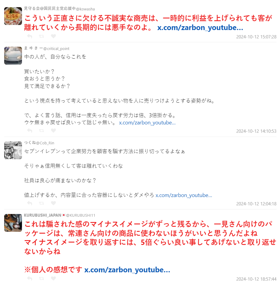 不少網友指出,這種「被騙感」的負面印象會一直存在,像這種缺乏誠信的商業手法,即使能短期內賺到錢,顧客也會離開,長期來看是一個壞策略。信用一旦失去,恢復起來的成本是兩倍、三倍,這不是「不爽不要買」那麼簡單的事。
