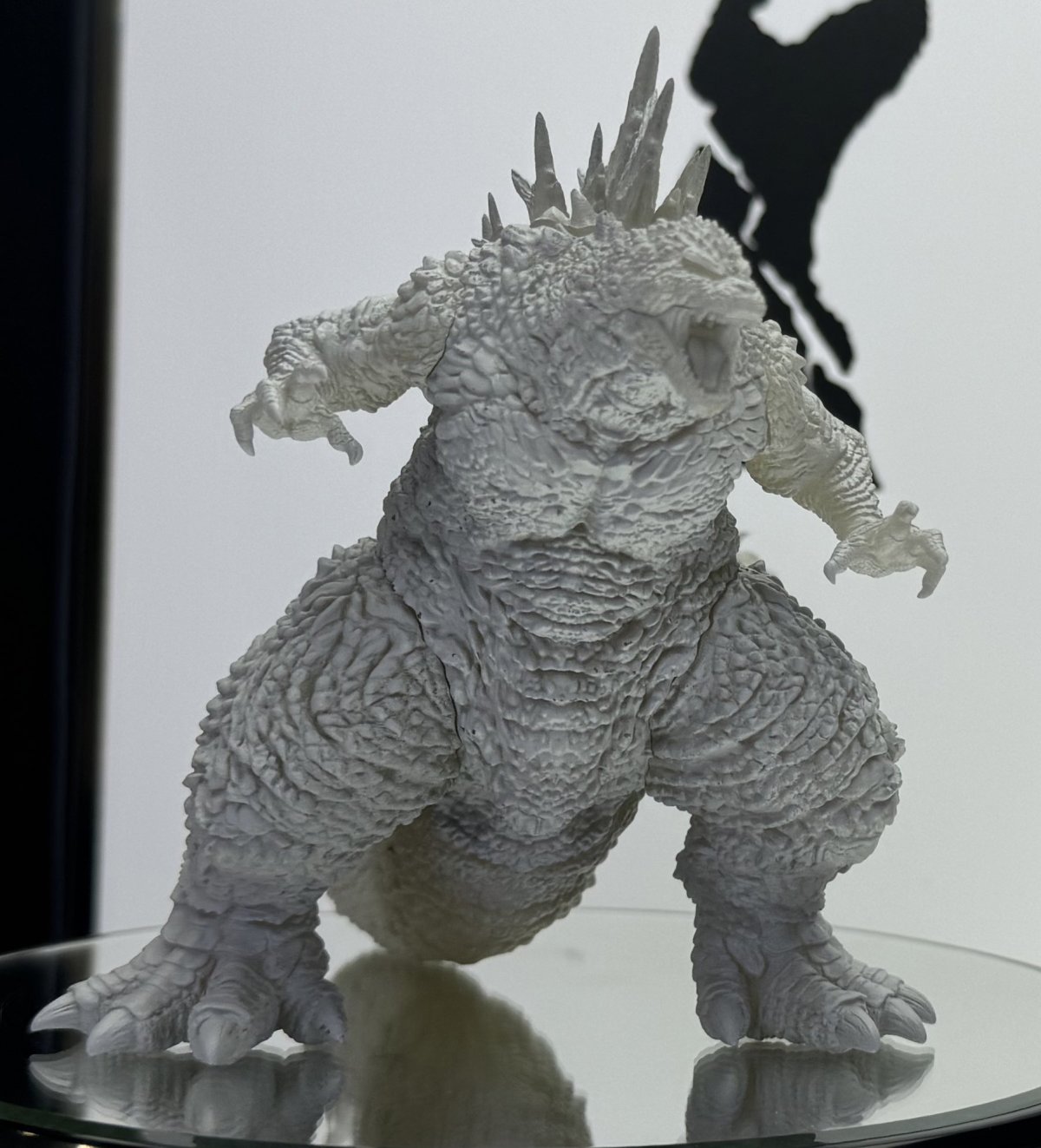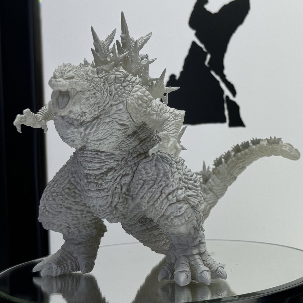「PLAfig 哥吉拉(2023)」的開發中原型也在展覽中首度曝光,這款商品邀請到在生物模型領域中相當知名的造型作家蟹蟲修造擔任原型製作,將劇中哥吉拉登陸東京後,吐出放射熱線摧毀國會議事堂的魄力姿態立體化,細膩刻畫出極具份量的身體輪廓、全身粗糙的皮膚細節與兇惡的五官造型。