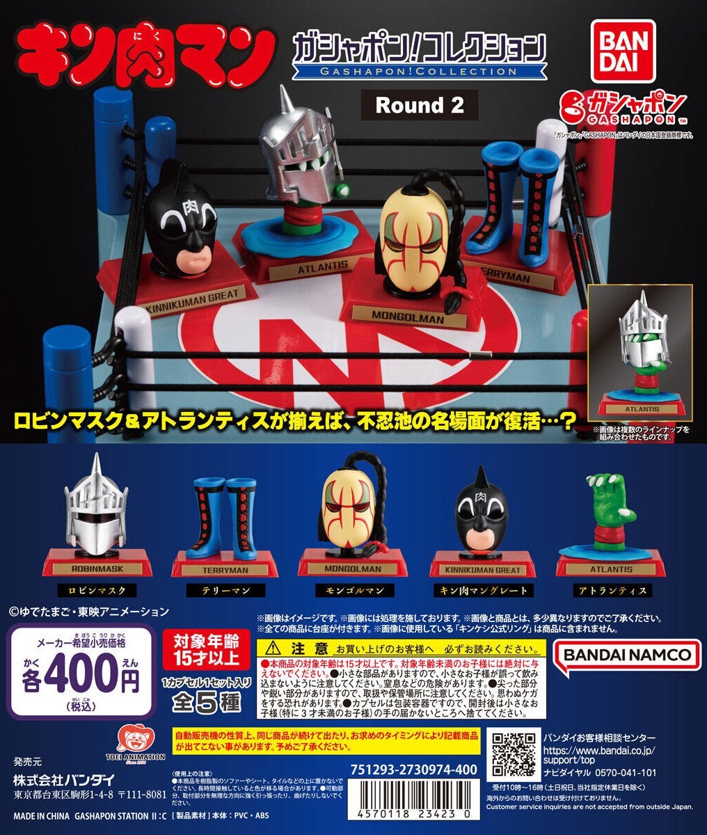 由日本萬代轉蛋事業部 GASHAPON 發行的「GASHAPON!COLLECTION (ガシャポン!コレクション) 」系列,以人氣作品《金肉人》為主題,推出第二彈的「GASHAPON!COLLECTION 金肉人 Round2」轉蛋!一共有五種款式,參考售價為一轉 400 日圓,預計將於 2024 年 10 月在開轉。