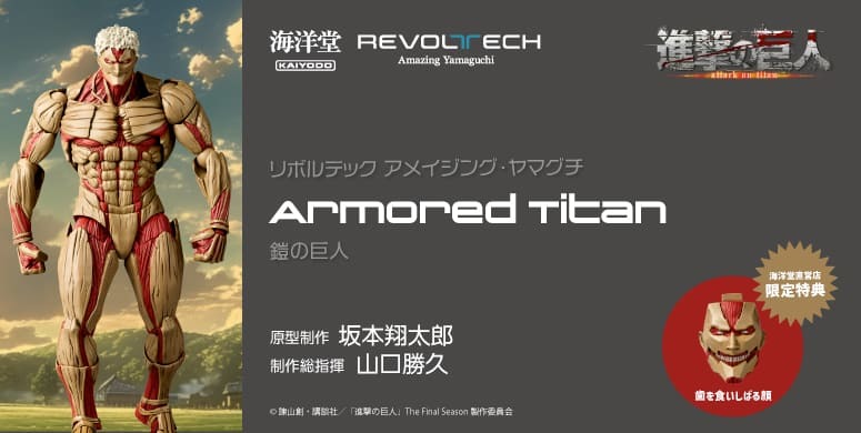 日本模型公司海洋堂(KAIYODO)旗下人氣的可動模型系列「AMAZING YAMAGUCHI」正式公開了超人氣動漫《進擊的巨人》主題的第三作——「鎧之巨人」可動人偶,參考售價為 9,350 日圓,預計於 2025 年 07 月發售!