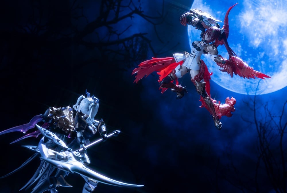 「阿爾卡納蒂亞 霞羽瑤」套件運用分色分件、預先塗裝完成零件與貼紙,大幅再現 necömi 所設計、靈活而性感的非對稱服裝造型,同時也繼承『阿爾卡納蒂亞』系列的精密可動素體設計,包含裙襬、尾巴都具備多段可動軸,能夠兼具優美的體態、令人驚豔的可動範圍。