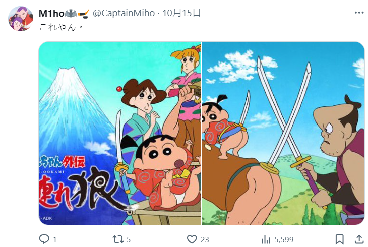 遊戲一釋出,就不少網友對這種屁股揮劍的概念感到有趣,有人想到了動畫《蠟筆小新外傳3 帶家之狼》中,就有小新跟爸爸廣志用屁股揮劍的場景。