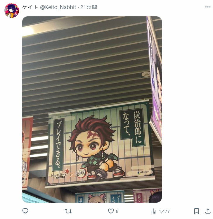 亦有網友想到先前《鬼滅之刃》合作廣告看板上,點陣圖的炭治郎的手被誤認為屁股的景象 www。