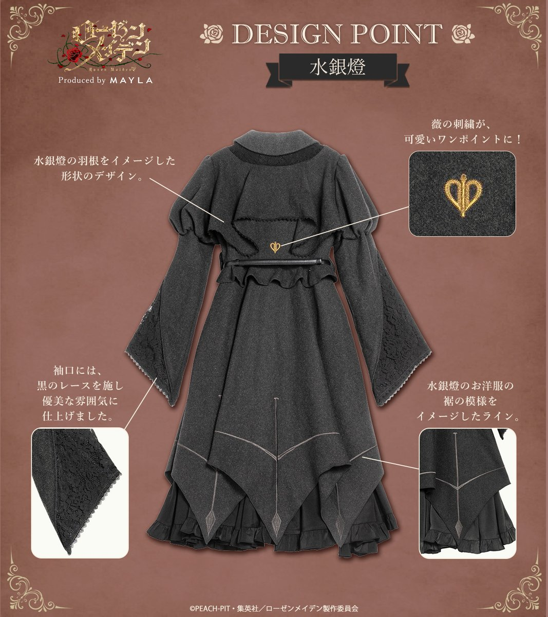 近日宣布與 PEACH-PIT 創作的漫畫《薔薇少女》合作,推出以真紅 & 水銀燈為主題的成套洋裝。售價為 39,600 日圓,目前已可在官網訂購。