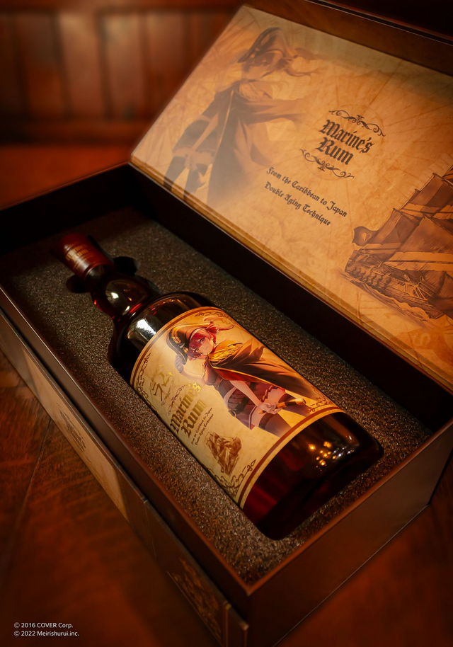 這次推出的精釀朗姆酒,以「マリンズラム」 命名,由於瑪琳設定上是寶鐘海賊團的船長,因此特別從充滿海盜歷史的加勒比海挑選了精選原酒,並在明利酒類的熟成庫中進行再熟成與調配。這款朗姆酒的靈感來自海盜團成員透過喝酒來加深彼此羈絆的傳說,成為了獻給「寶鐘一味」的特別朗姆酒。