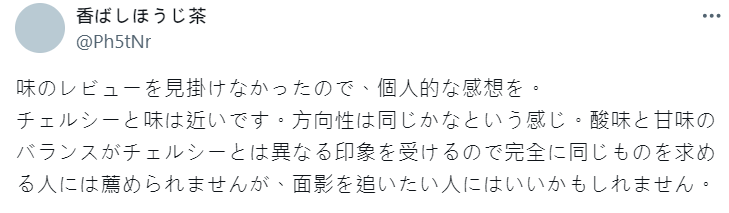 至於口味如何,購買的網友表示吃起來有點像又有點不同,但也是好吃的,很像是遇到小時候熟悉的朋友的感覺。方向上是差不多的感覺,但酸味和甜味的平衡和「CHELSEA」有點不同,所以如果你是想找完全一樣的口味,可能不太適合。不過,對於想找回那種熟悉味道的人,這款或許是個不錯的選擇。