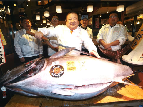自稱「鮪魚大王」也不是浪得虛名,除了對自家料理的自豪外,更因曾參加築地市場的年初鮪魚拍賣,以世界最高的金額買下當年的「一番鮪」,更在之後成為「拍賣成交價格最高的鮪魚」創下世界紀錄。