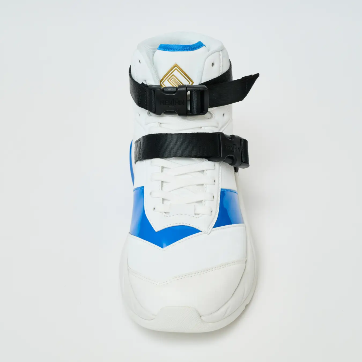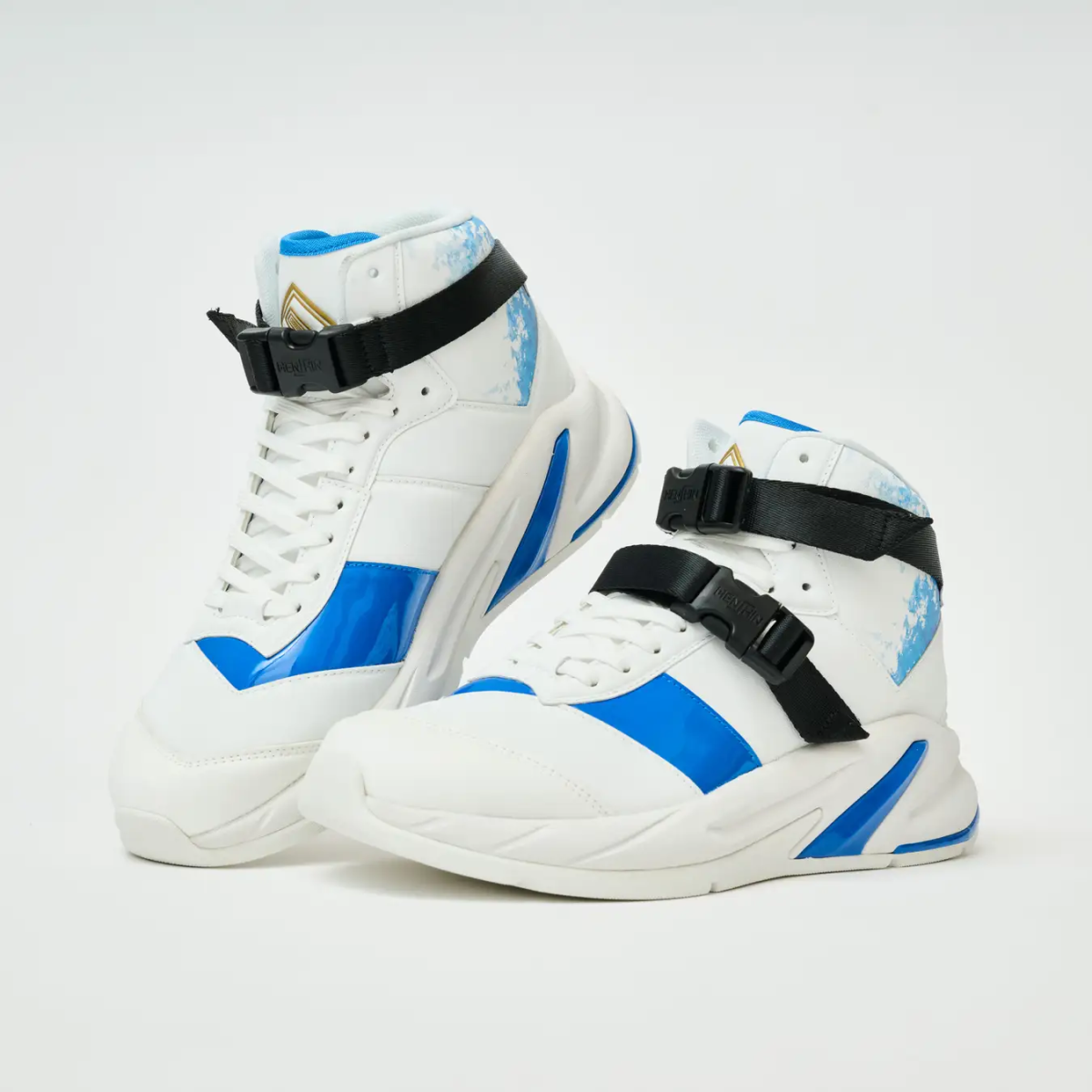鞋子運用了簡約的白色為基調,同時以藍色亮皮材質搭配,並採用高筒設計,帶有科技感的味道。鞋舌部分的設計融入了「Eternal 記憶體」的圖案,綁帶處則表現了「契合環」和「Cyborg Max腰帶」,高筒部分還印上了「藍色火焰」的元素,充分展現特色。