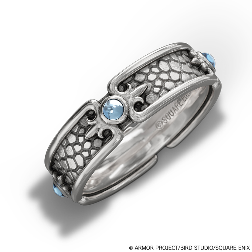 官方將出現在遊戲中的「星降手環」,以純銀 925 搭配天然石製作而成,還原原設定中外觀上的龍鱗紋路,銀色搭配藍色天然石的造型,配戴起來也十分具有識別度。雖說不是製作成原作的手環,不過相信對勇者鬥惡龍的粉絲來說,還是一個非常值得擁有的收藏。