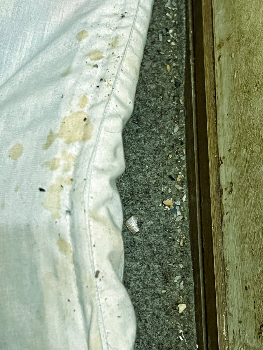由於床單很亂又有灰塵,推主決定用塑膠袋鋪在床鋪上直接入睡,看起來非常簡陋,但還是一個可以睡的環境。
