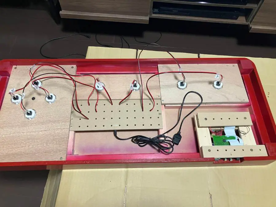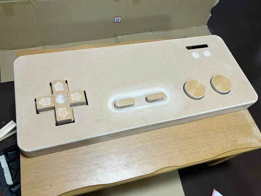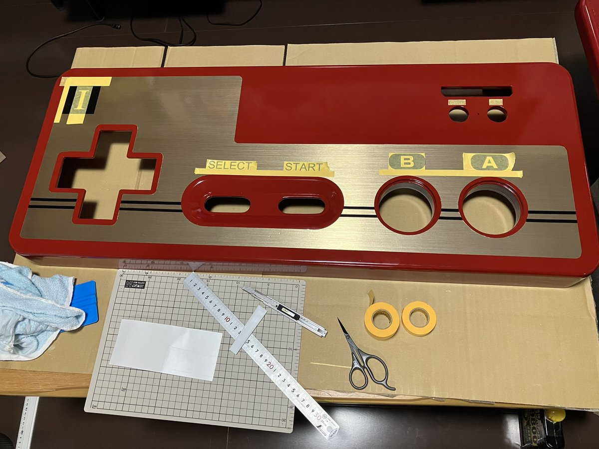 之後,經過底座佈線、噴漆、貼上紅白機手把外觀的貼紙,大抵上就完成了。
