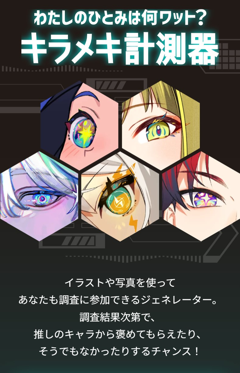 日本關西電力推出了一個空想科學企劃「キラメキ電力調査」,用以來驗證眼睛若能發電則會發出多少瓦的電,並請來知名的《空想科學讀本》系列的作者柳田理科雄來為我們解答。