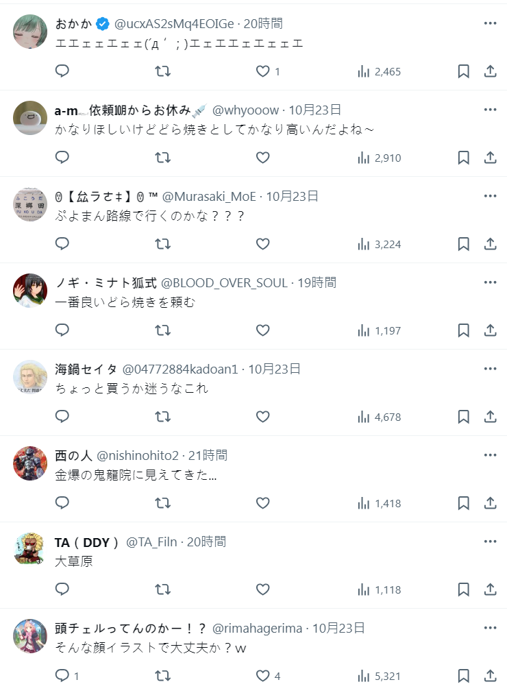 沒想到今日 ( 10/24 ) 竟與日本點心品牌「顔どら焼き」合作,推出以劇中角色臉龐為設計的銅鑼燒,讓不少網民嘴角失守,到底為何會有這種鬼東西 www。