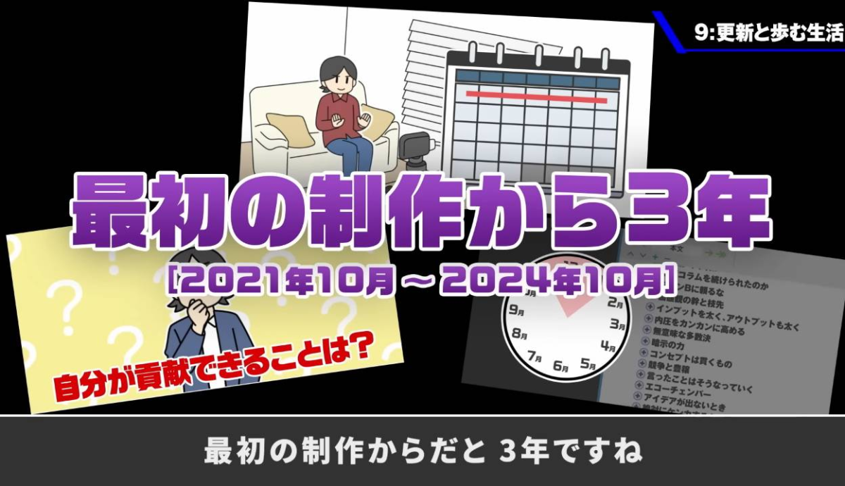 不過,一旦工作恢復後,他清楚知道會忙於遊戲開發的工作,還有自己創立的有限会社ソラ的公司業務。要同時經營 YouTube 頻道在時間上很難調配,因此「為了增加成功機率,事先把整個內容安排好是必要條件」。