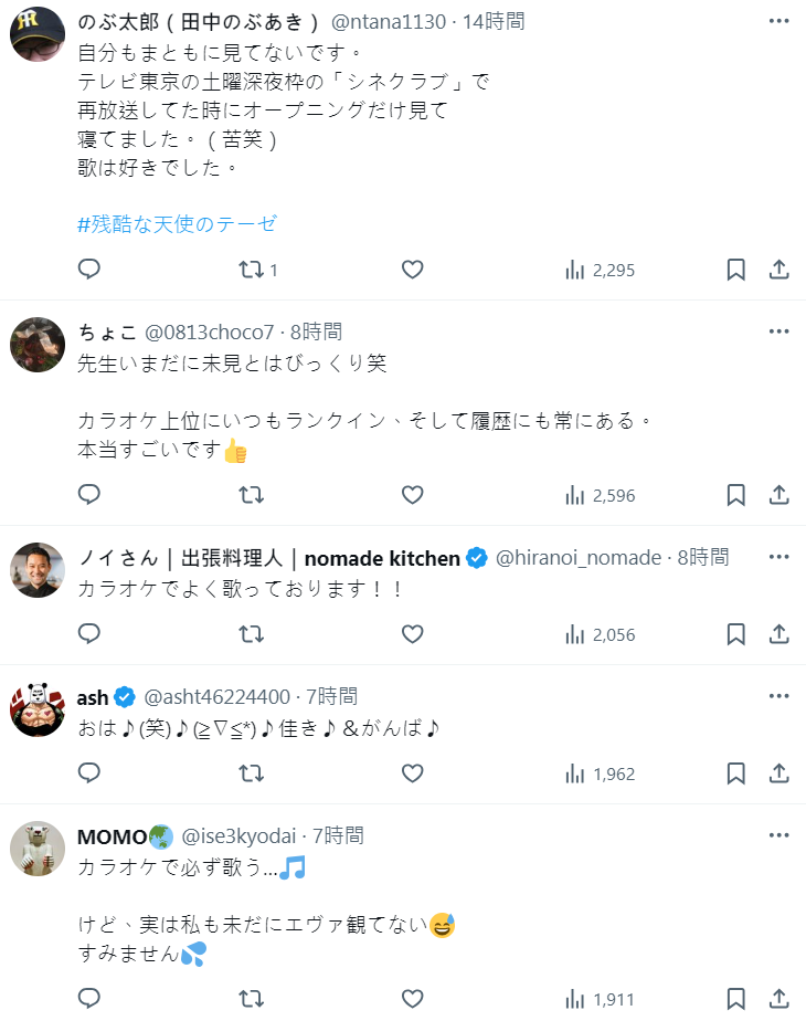 就算你歌詞不會唱,聽到旋律就能跟著哼,由高橋洋子演唱的《新世紀福音戰士》片頭曲「殘酷天使的行動綱領」( 残酷な天使のテーゼ ) 在日本可說是有如國歌般的存在。