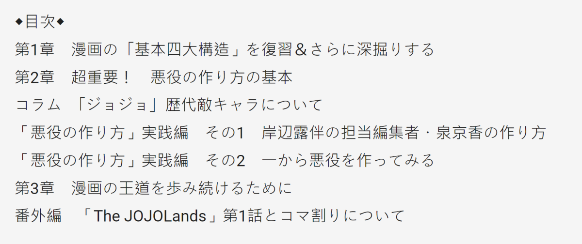 然而,荒木飛呂彥心想,如果有些人因為閱讀「荒木飛呂彥漫畫術」而成為漫畫家,那麼是否也該傳達一些更深層的內容?