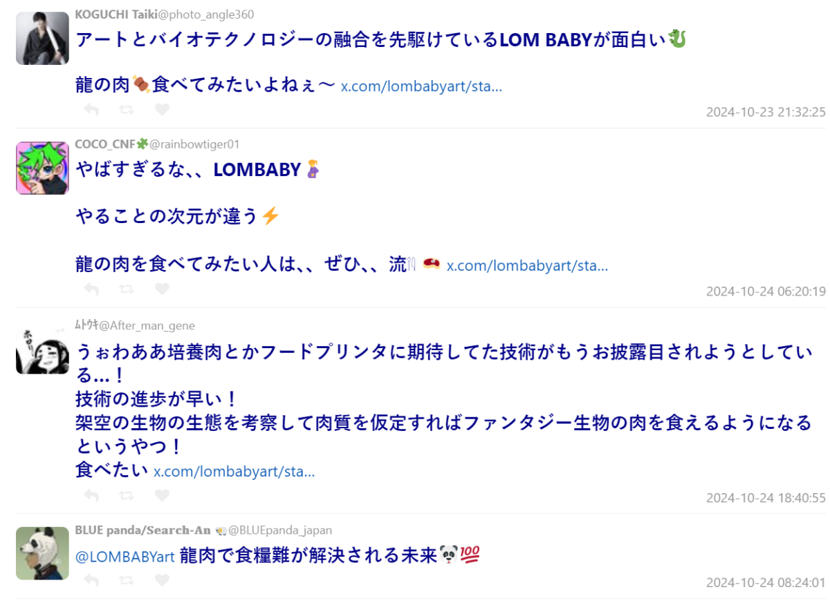 事實上這個品牌 LOM BABY,一直都在進行有關於「人造肉」的研究,希望可以改善世界糧食不足的未來窘境,這次所謂的「龍肉」,是透過 AI 合成出龍的 DNA 混入大豆製成的人造肉中,給大家全新的體驗。