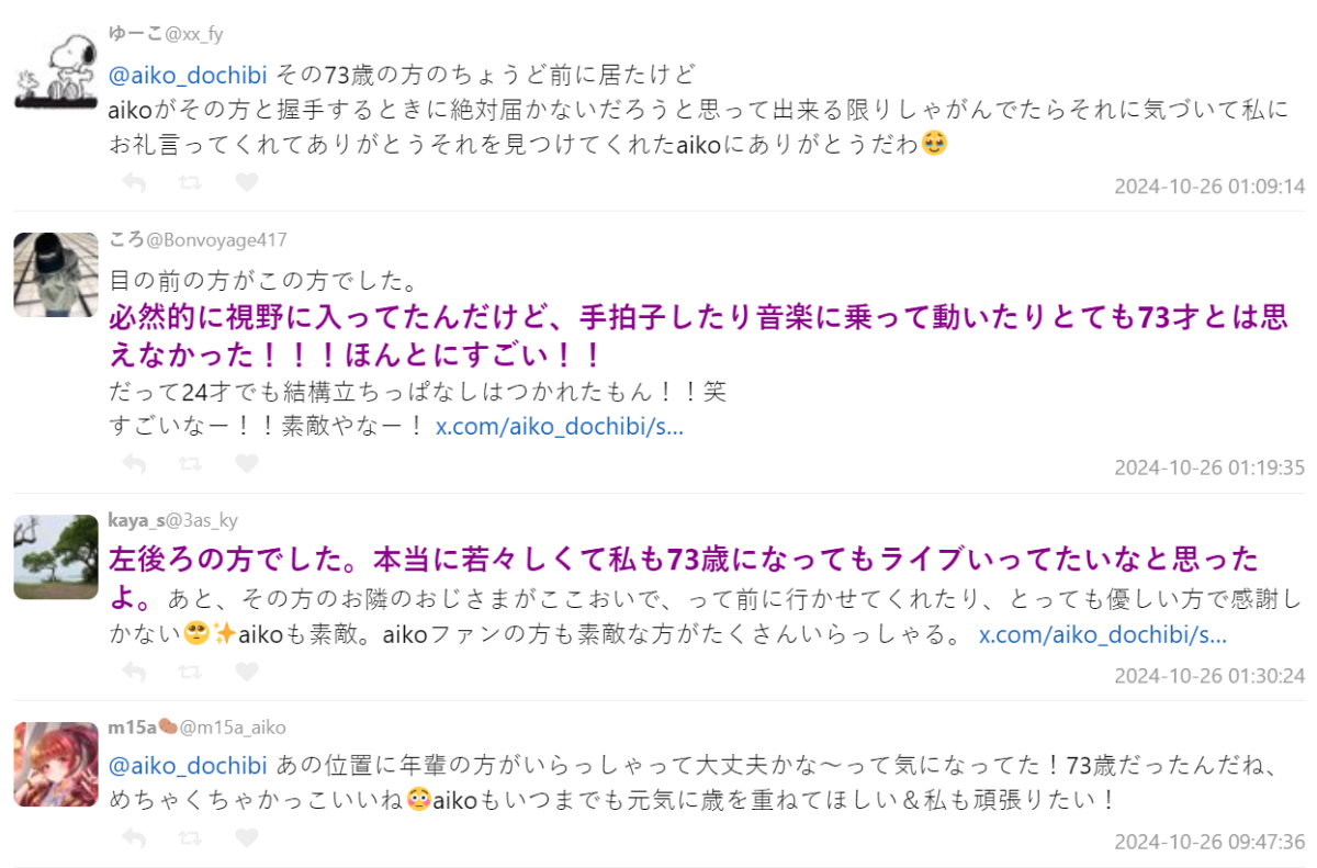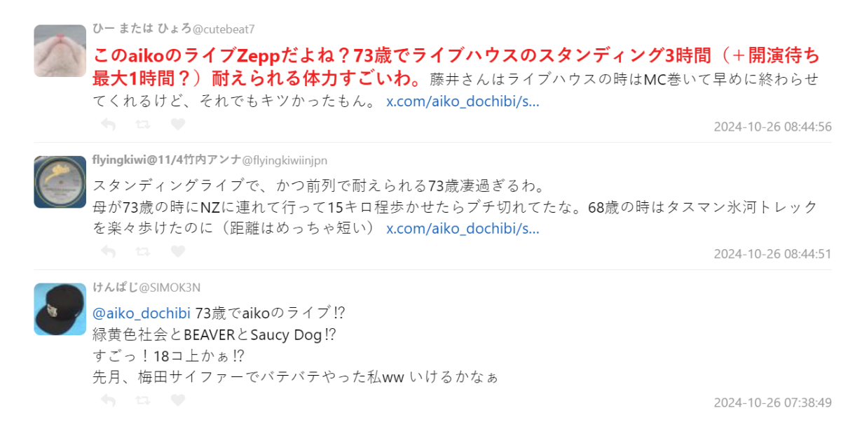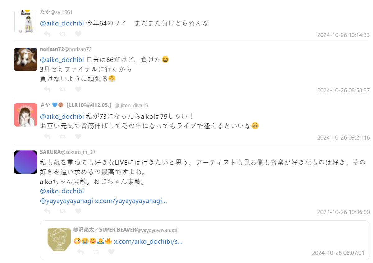 不少年紀稍長的粉絲也表示自己也不會向年紀認輸,有機會還是要到演唱會支持,看得出大家都對 aiko 非常支持。