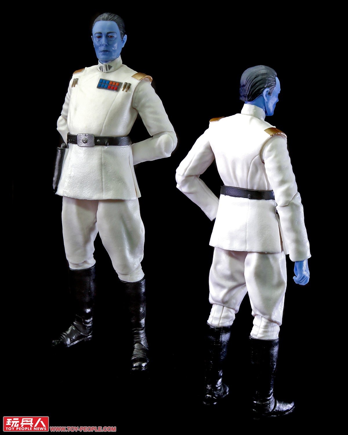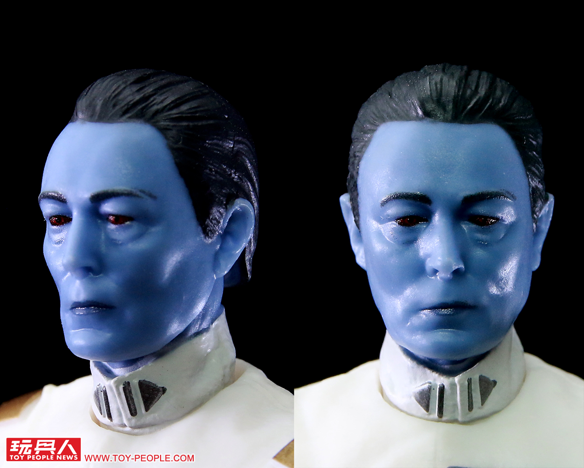 ▼「索龍大元帥」(Grand Admiral Thrawn),取材自影集《亞蘇卡》的真人版造型,冷酷、睿智、滿腹謀略的戰術天才,被視作最具威脅性的帝國大元帥,在動畫影集《星際大戰:反抗軍起義》(Star Wars: Rebels)最後的洛塔解放戰役(Liberation of Lothal)中,與艾斯納·包力格(Ezra Bridger)雙雙失蹤,而後在《亞蘇卡》中再度現身。