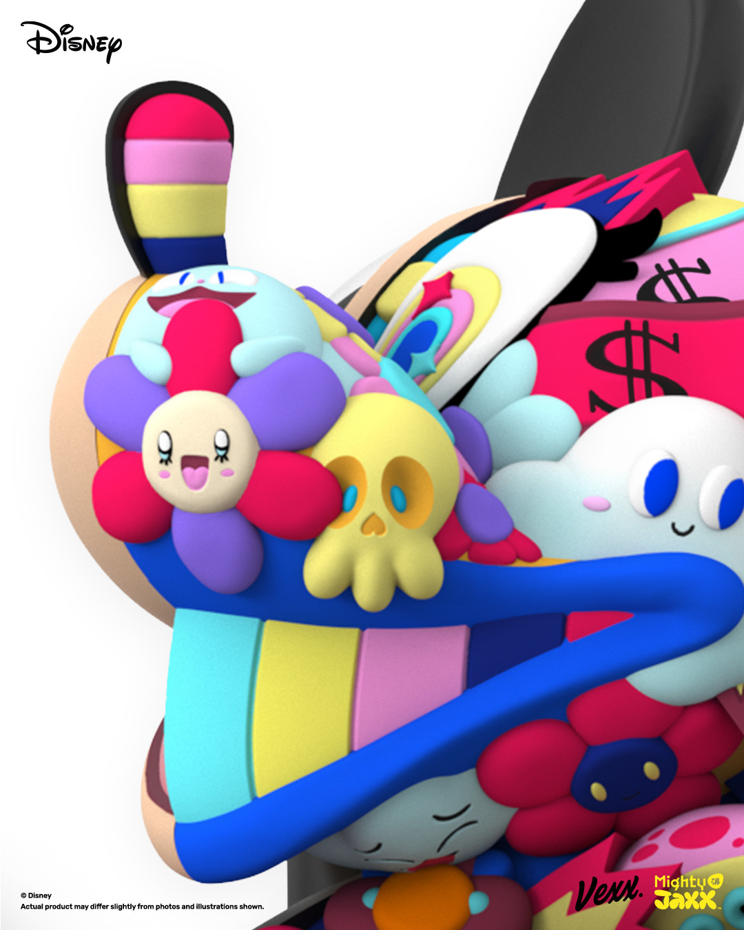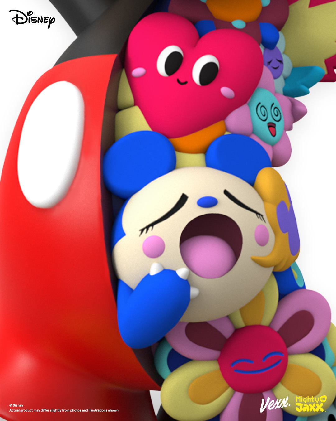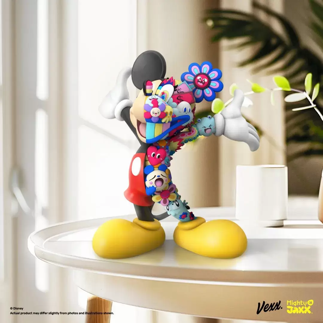 接下來是藝術收藏系列,與知名插畫家 Vexx 攜手,將他的強烈風格注入迪士尼偶像米老鼠之中,帶來色彩繽紛、既大膽又迷人的全新樣貌!半身充滿花朵與可愛角色的搶眼設計,將米奇的魅力提升到新的高度~