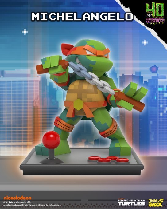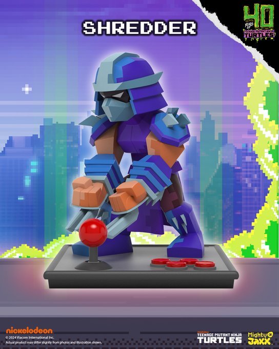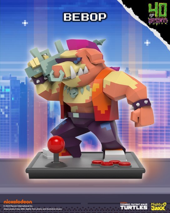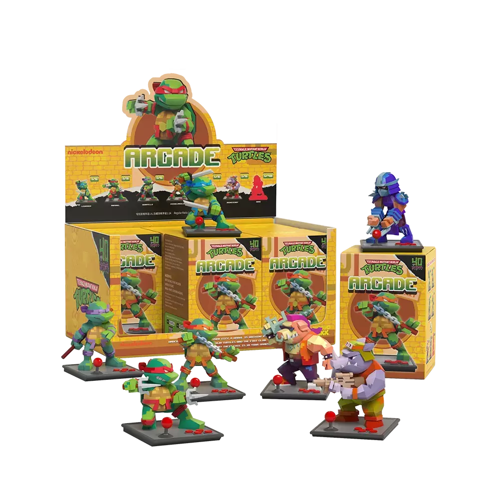 為慶祝街機系列《街機:忍者神龜》問世 40 週年,採用低多邊形藝術風格還原忍者龜的經典角色,搭配底座的搖桿按鈕設計,重現懷舊街機電玩的魅力!與反派角色比巴與洛克史迪、稀有的許瑞德對戰!